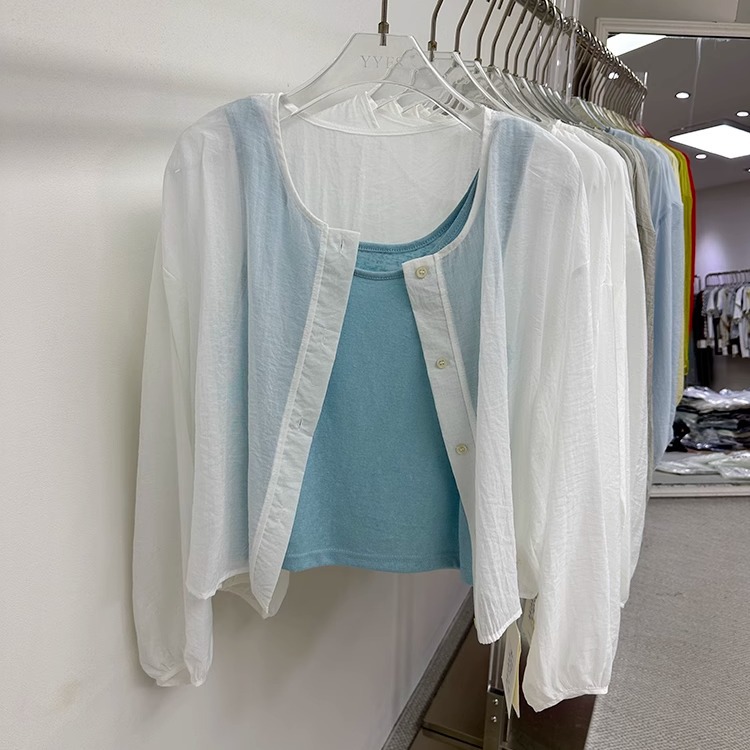 2025 夏ラウンドネックルーズカジュアル長袖日焼け止めジャケット + インナーキャミソール 2 点セット女性のトレンディな 81633