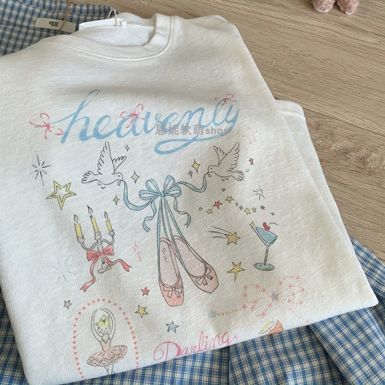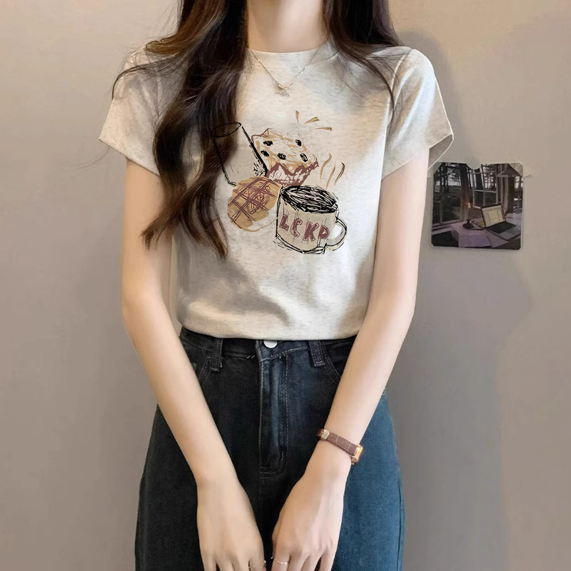 バレエワルツ~甘い女の子かわいいプリント半袖Tシャツレディース夏ゆったりカジュアル年齢軽減ラウンドネックトップス