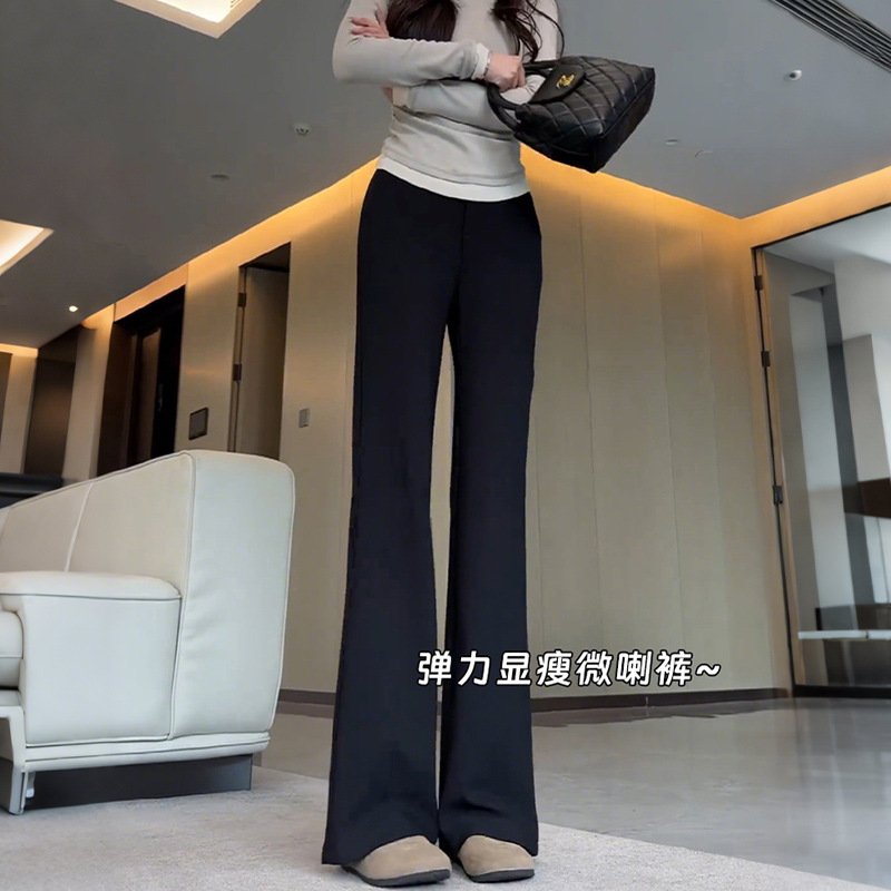 女性のための黒の弾性マイクロフレアカジュアルパンツ 2025 夏の新しい梨型ボディ大きいサイズ痩身狭いバージョンフレアパンツ
