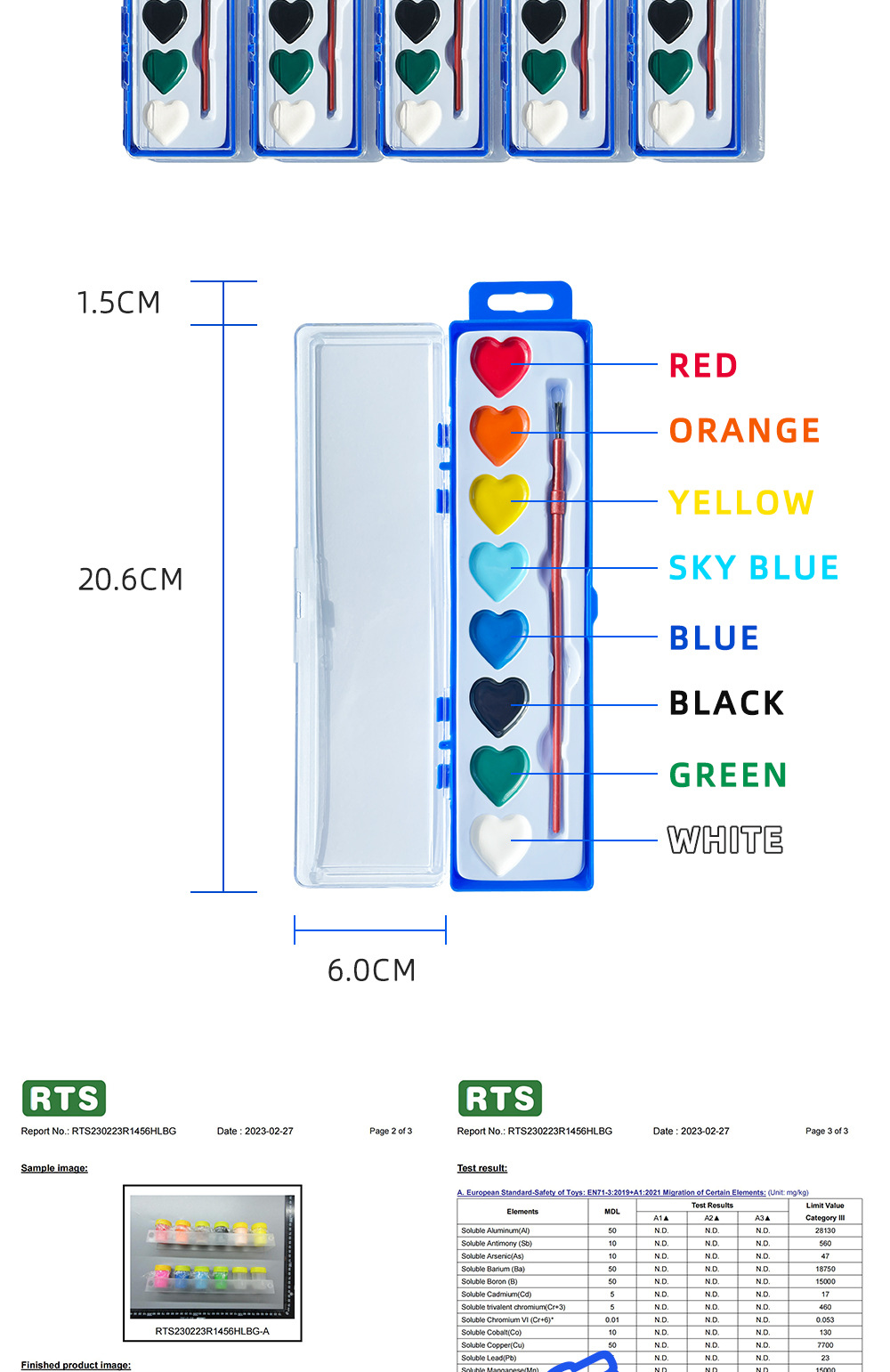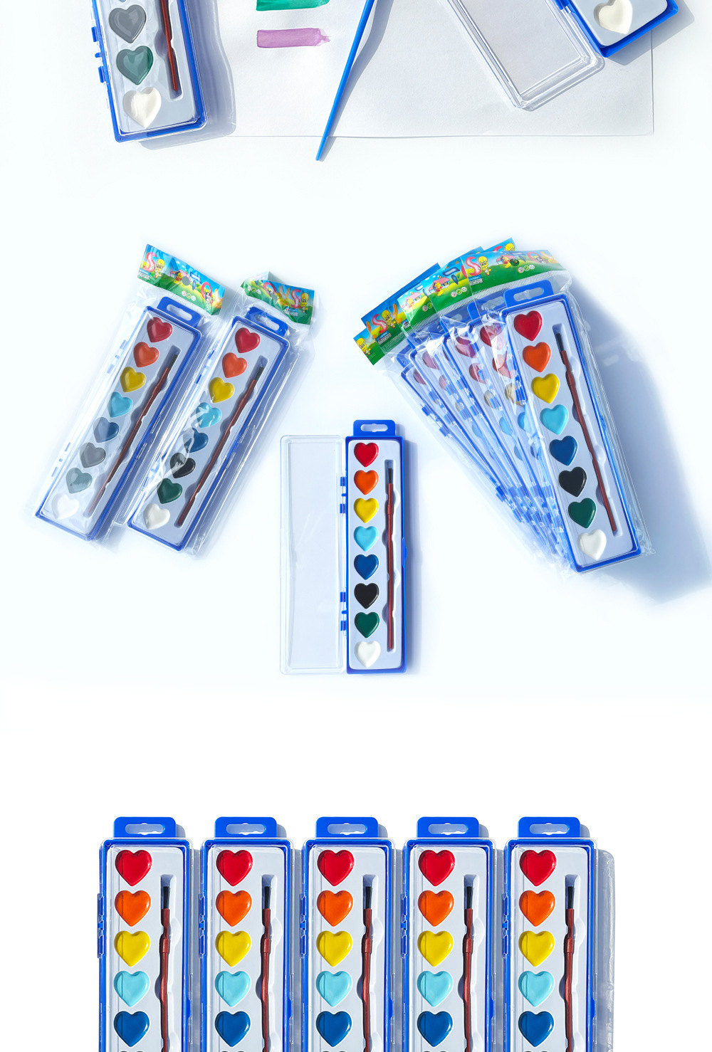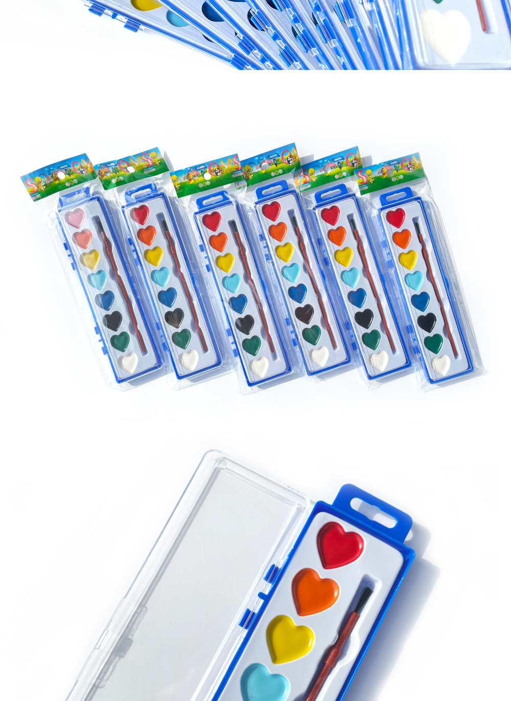 跨境情人节爱心形8色半干水彩水粉颜料儿童固体粉饼绘画涂鸦美术