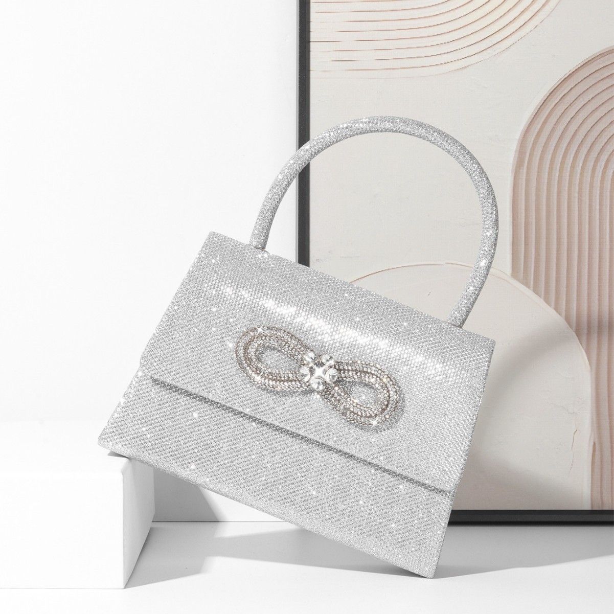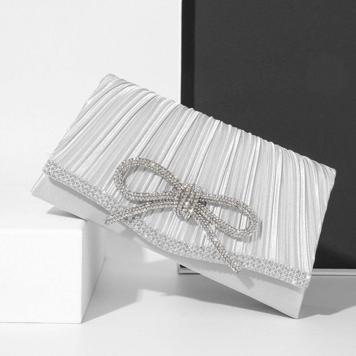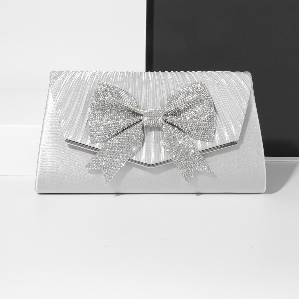 アマゾン ファッション シンプル ミニ イブニングバッグ プリーツ ダイヤモンド装飾 ハンドバッグ キラキラリボン付き 宴会バッグ