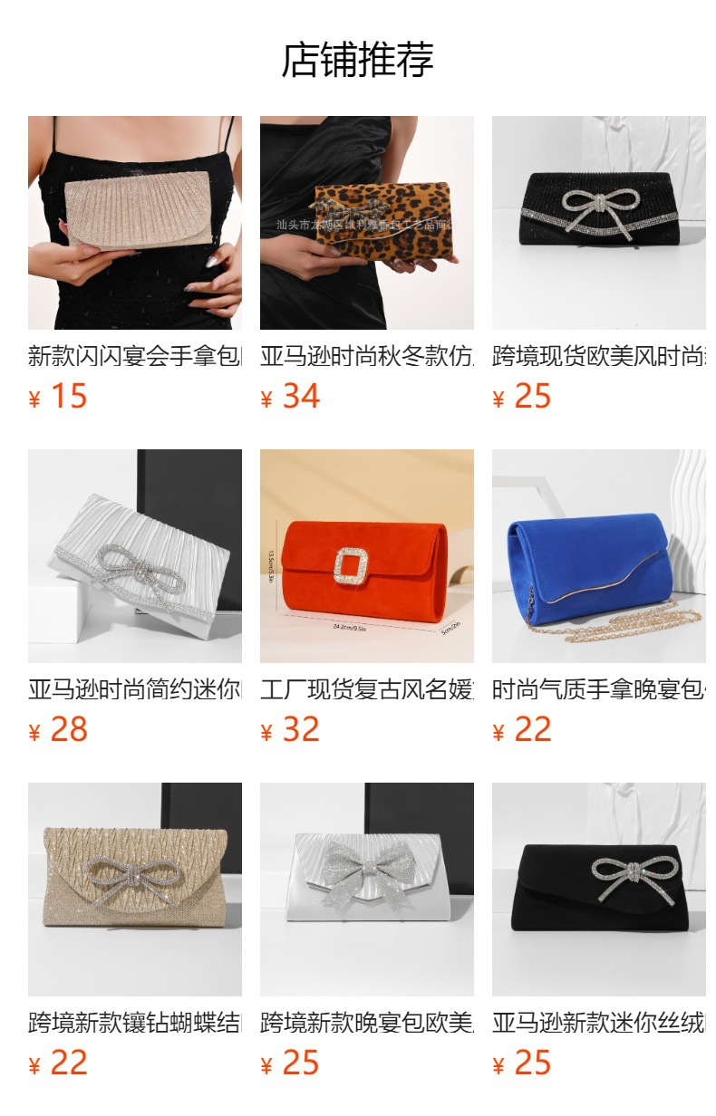 Amazon eコマース、新しいミニベルベットイブニングバッグ、ダイヤモンドリボンクラッチバッグ、フルーツカラーの高級宴会