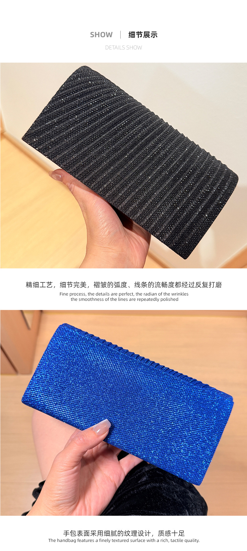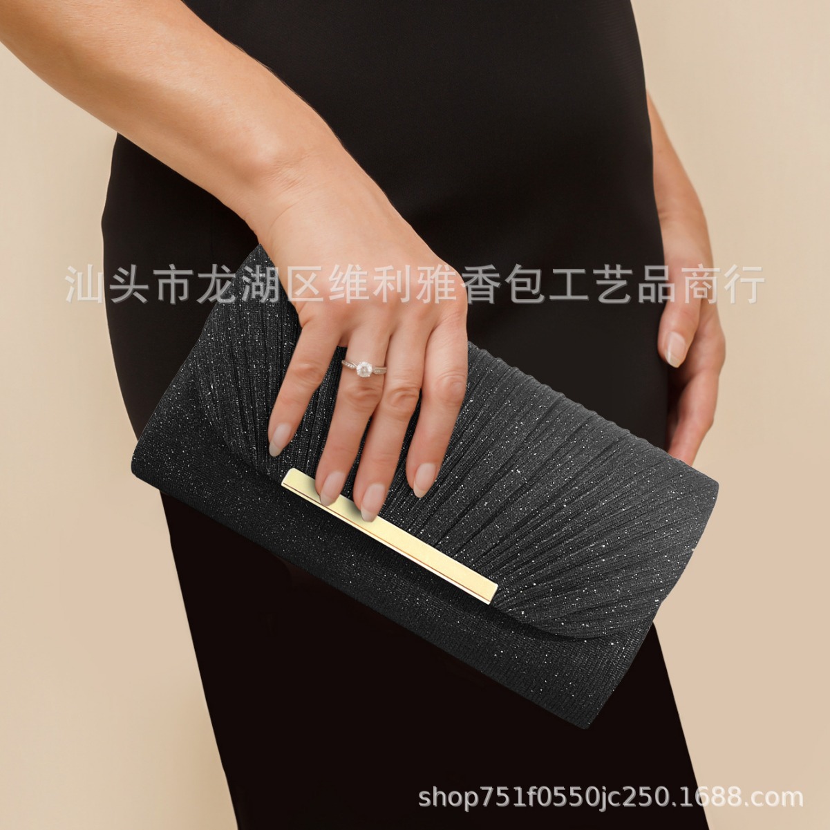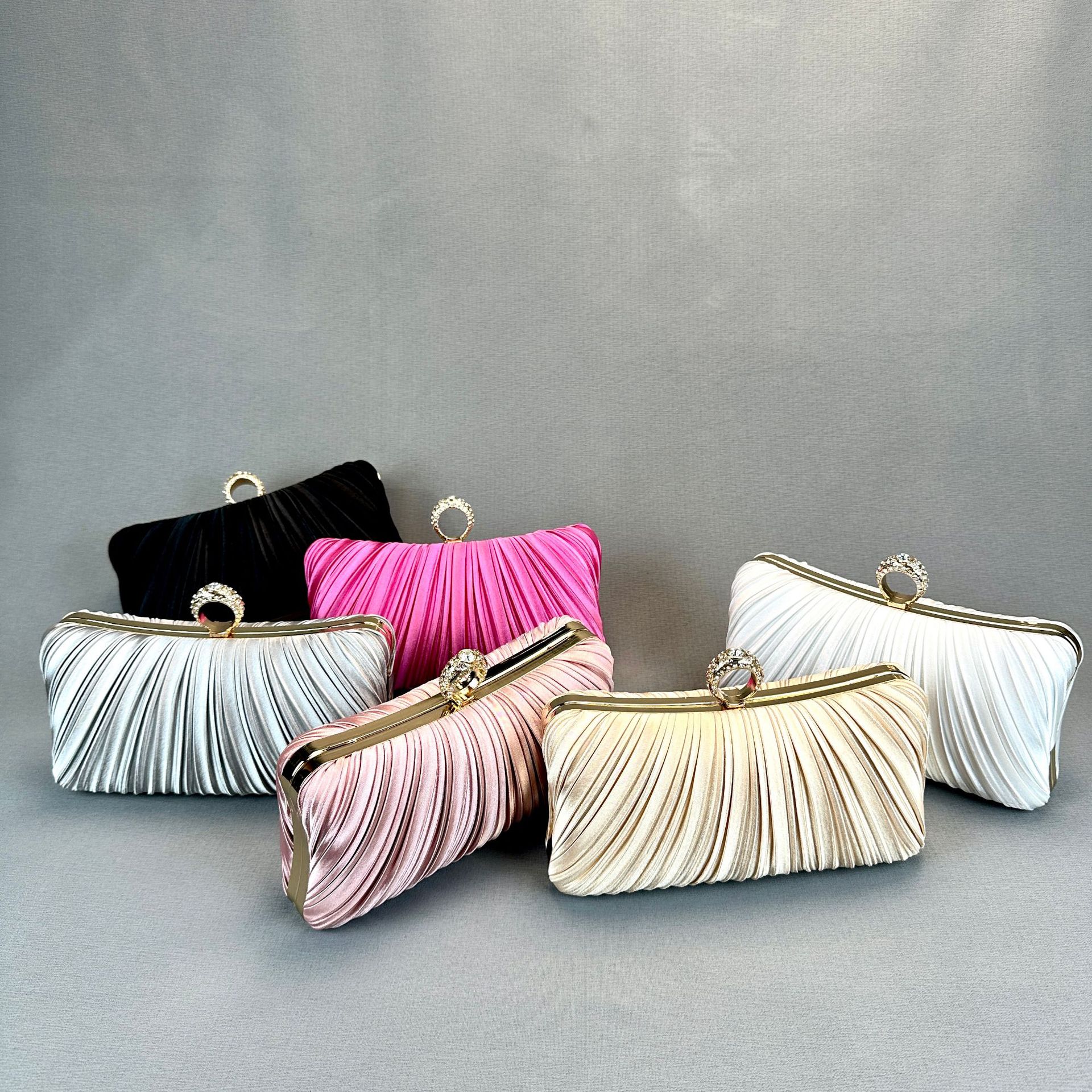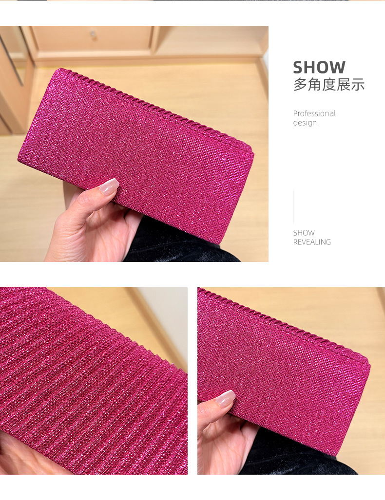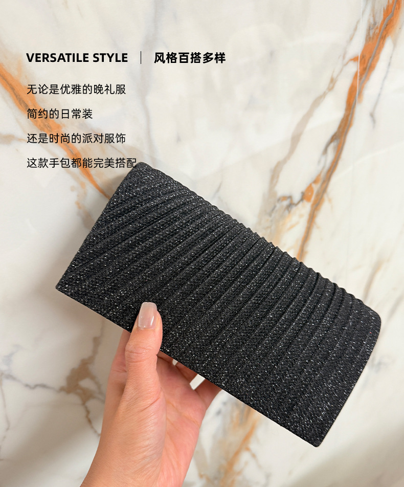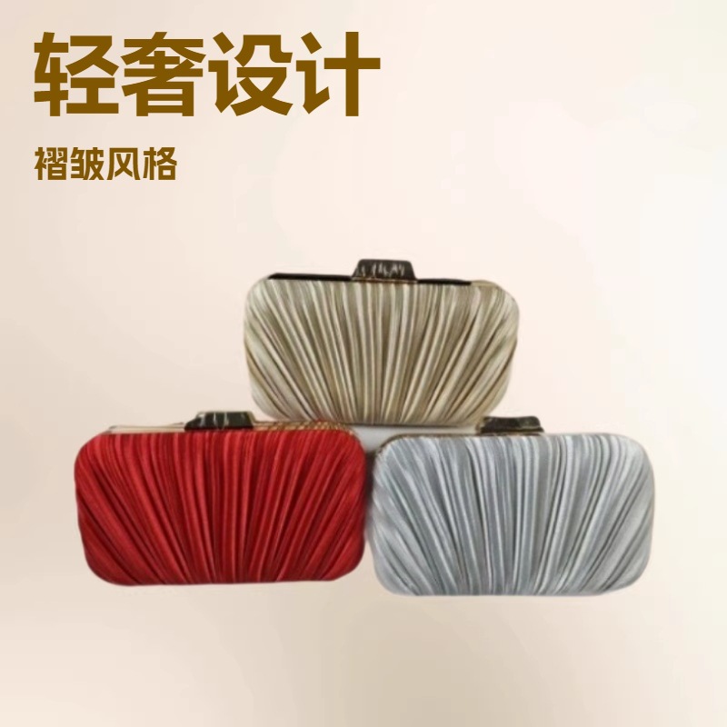 2025新款工厂直销轻奢晚宴包褶皱手拿包晚礼服旗袍配包高级感斜挎