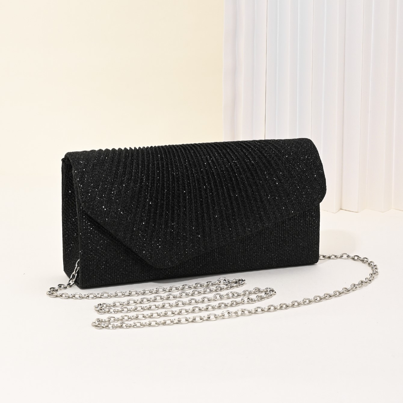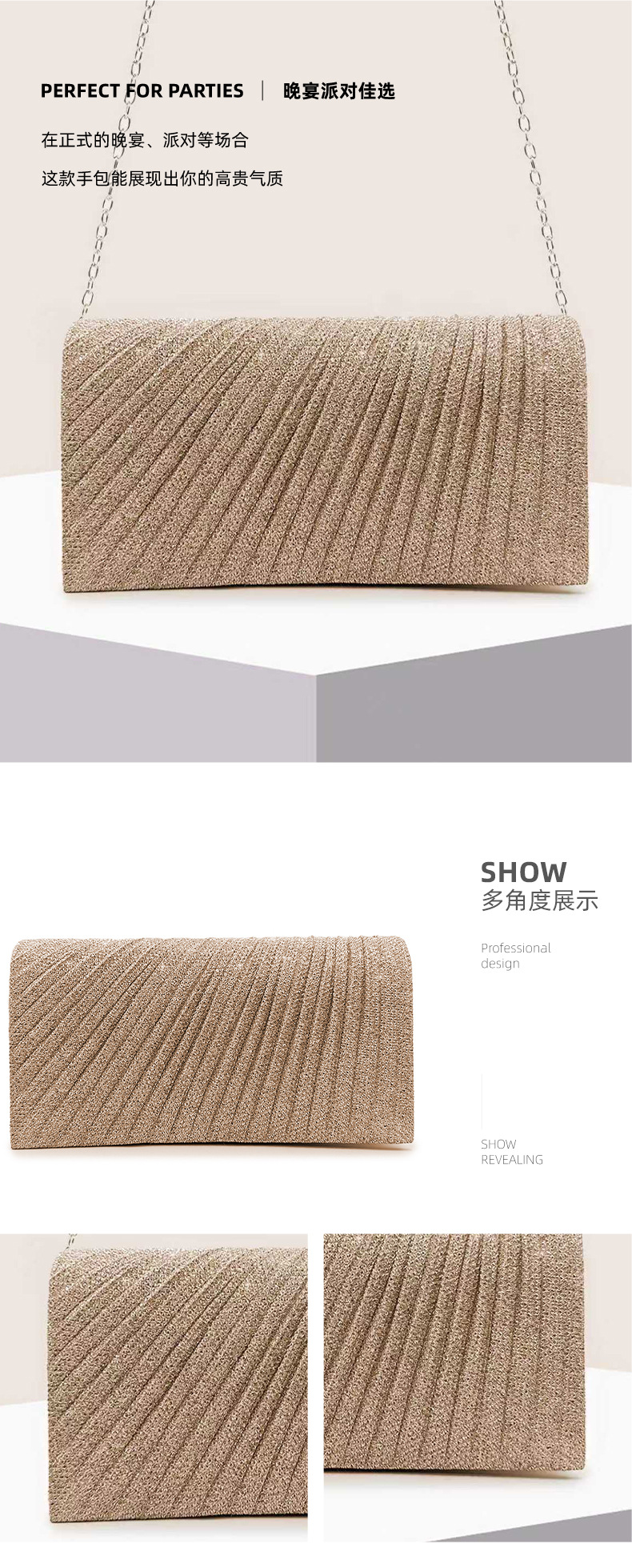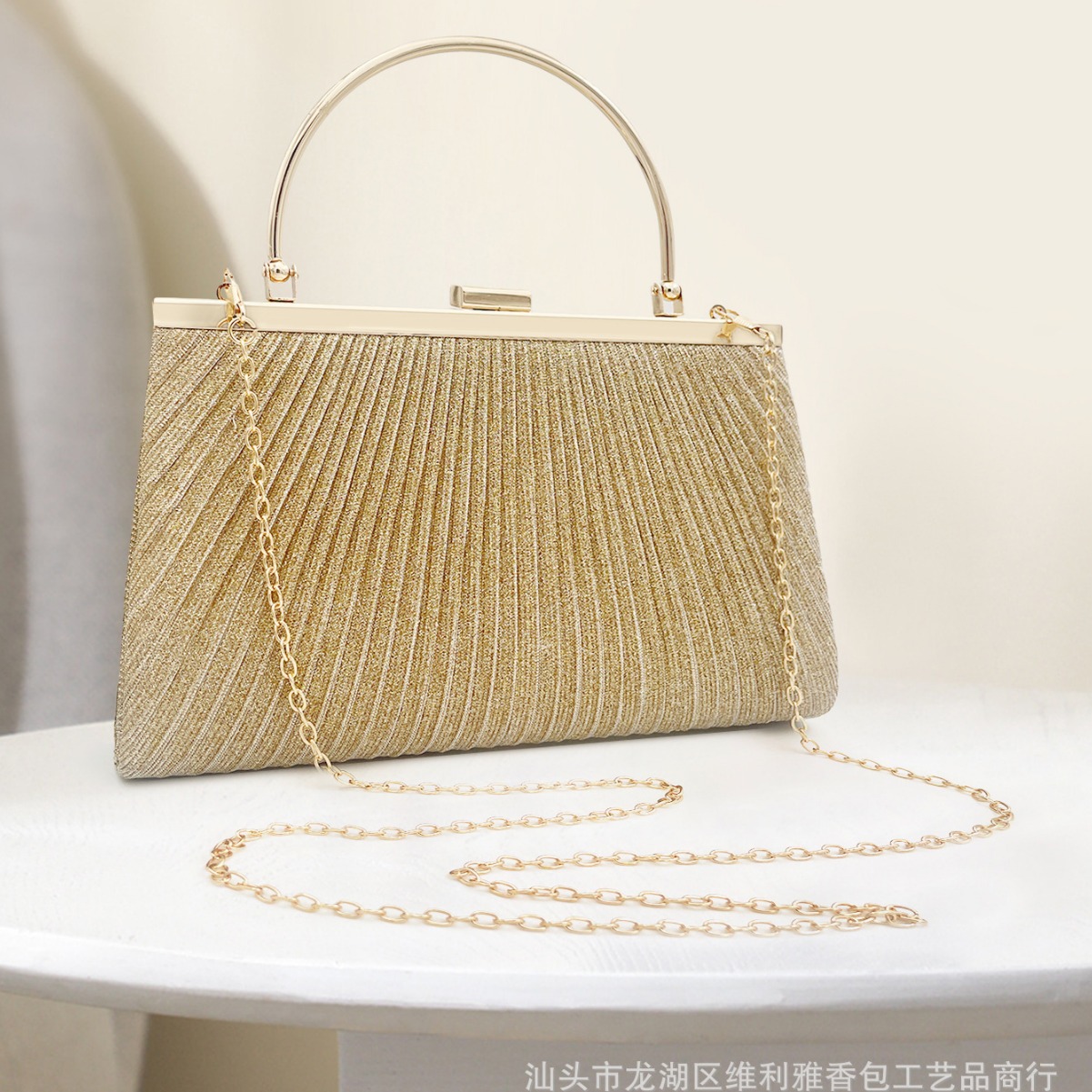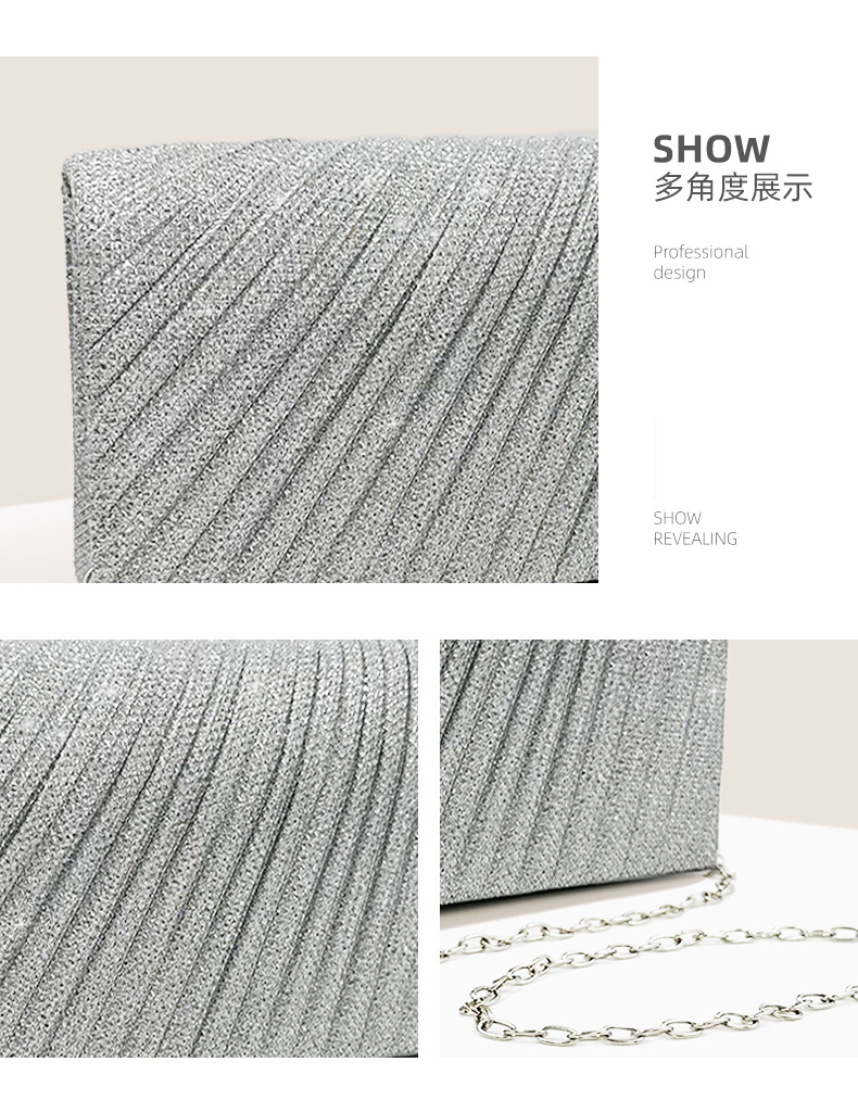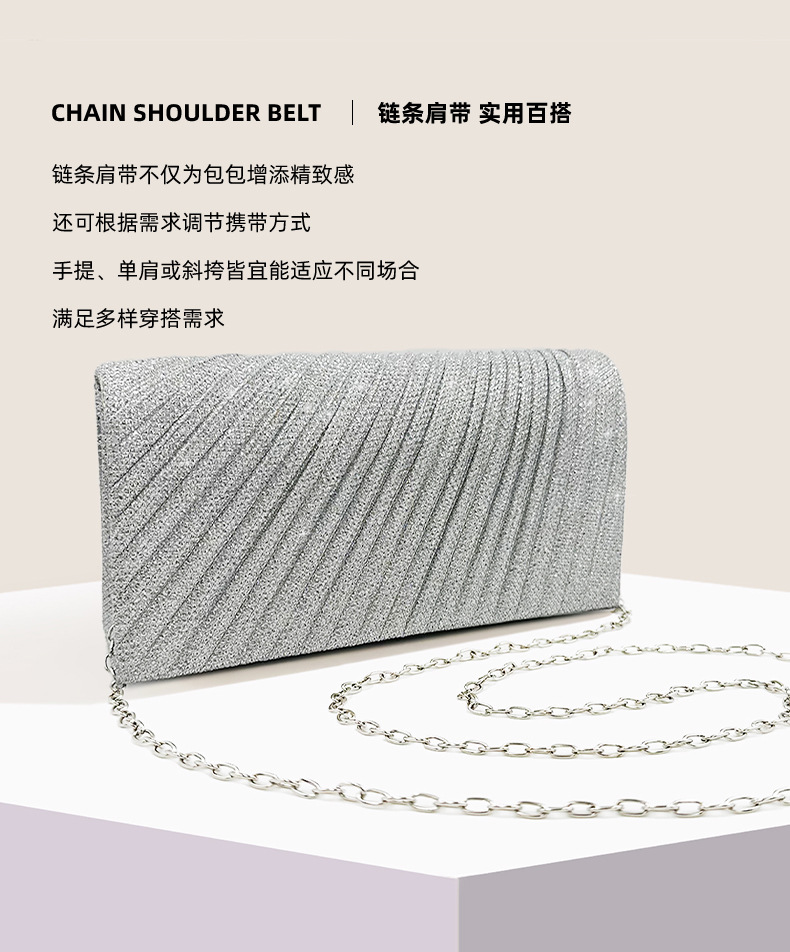 クロスボーダー新作イブニングバッグ、欧米風プリーツレディースチェーンショルダーバッグ、社交界の気品漂う宴会ドレスハンドバッグ