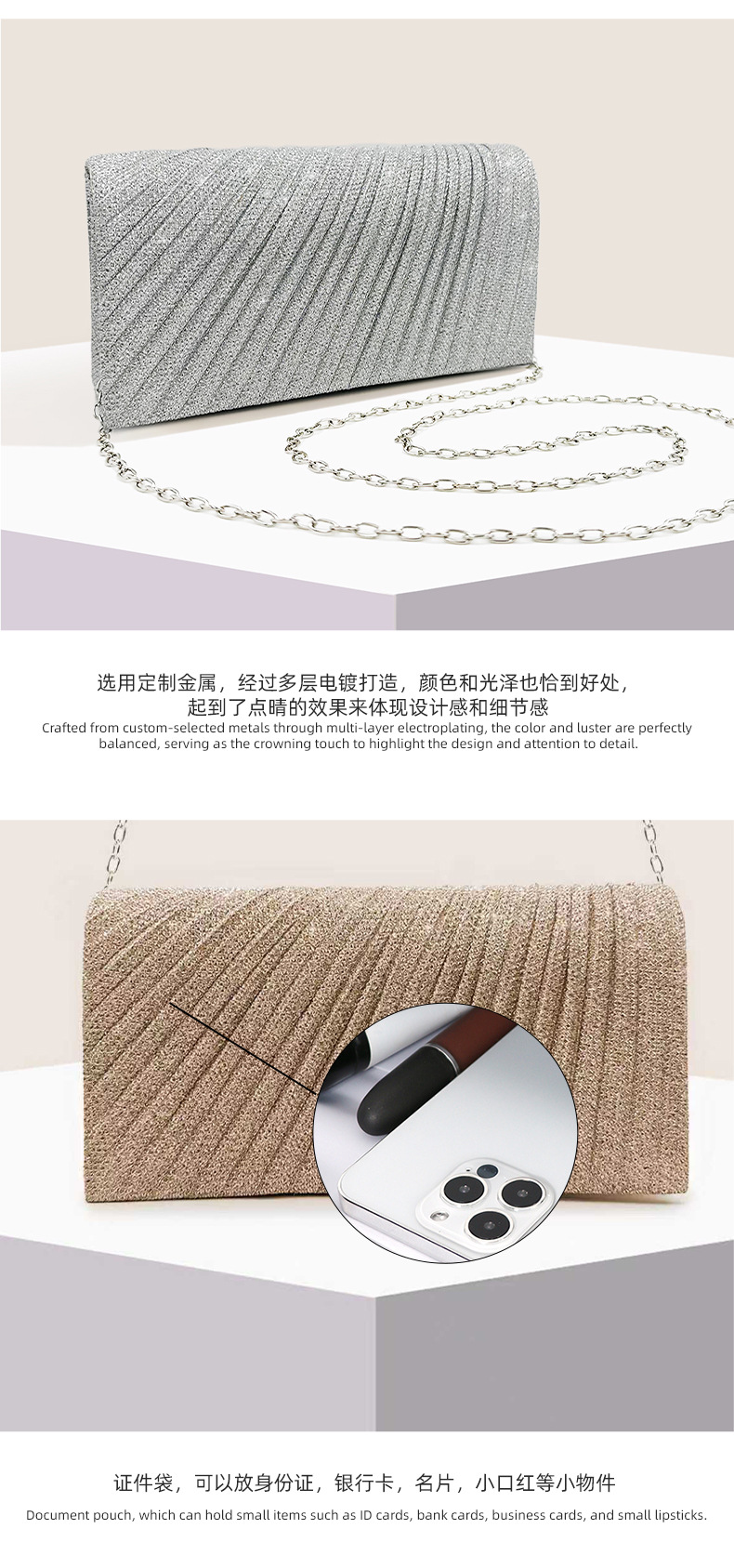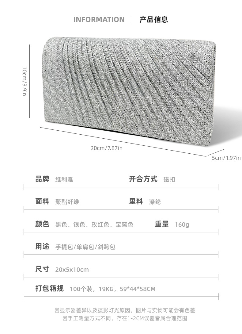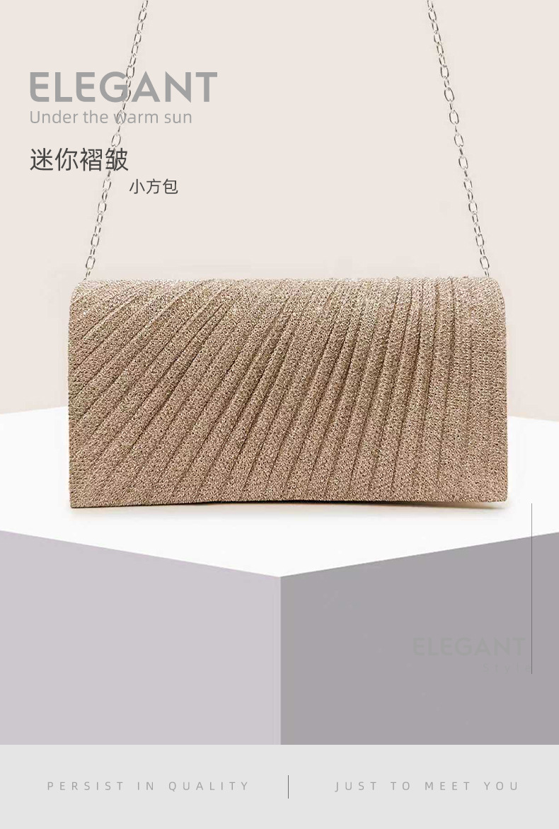 跨境现货迷你褶皱晚宴包小众宴会手拿包细闪链条小方包晚礼服配包
