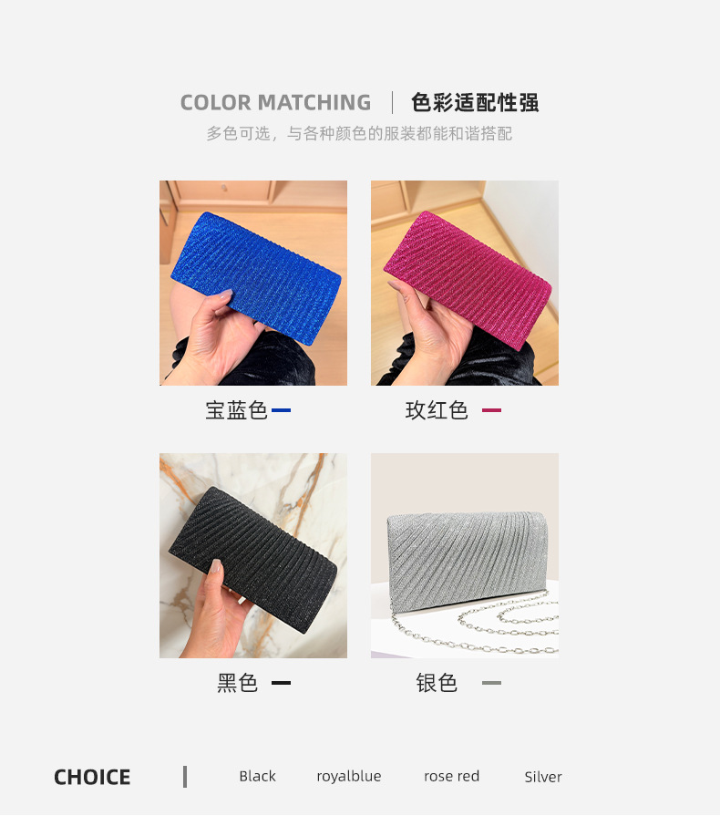 颜色 黑色,银色,玫红色,宝蓝色,香槟色