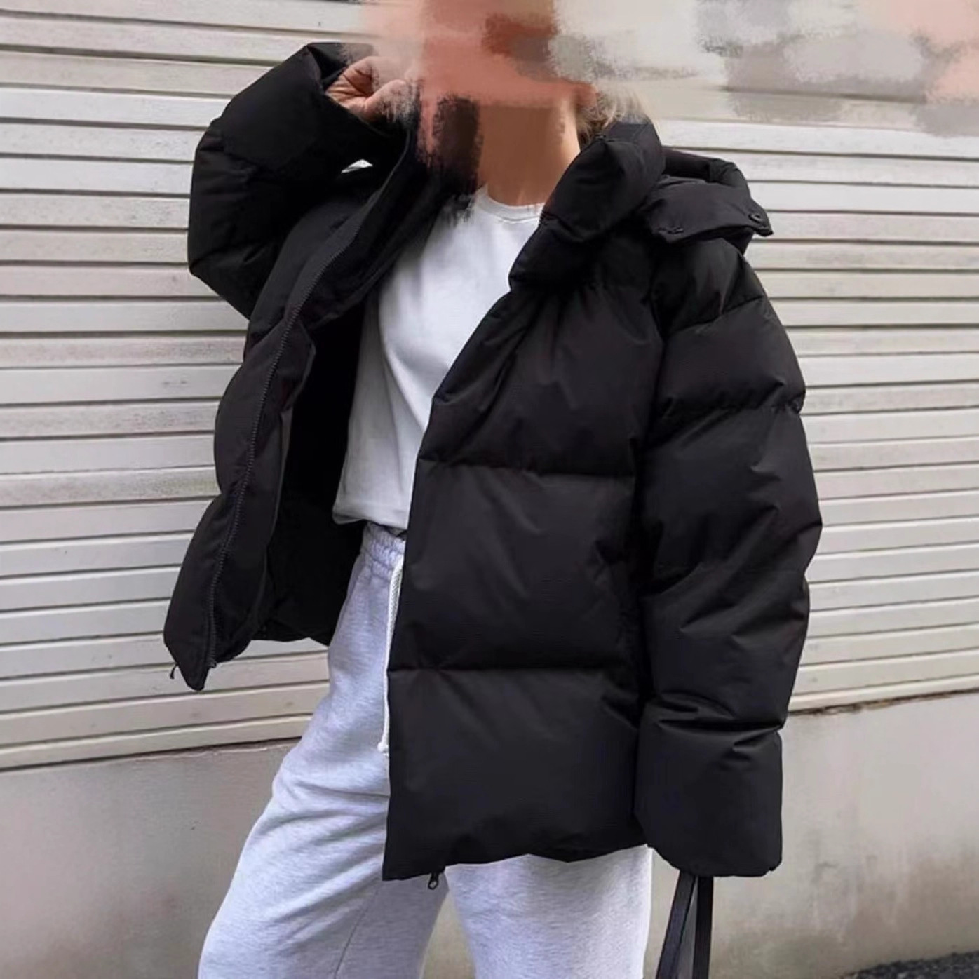 跨境棉服外套女2025年冬季欧美新款棉袄宽松棉服夹克纯色连帽棉衣