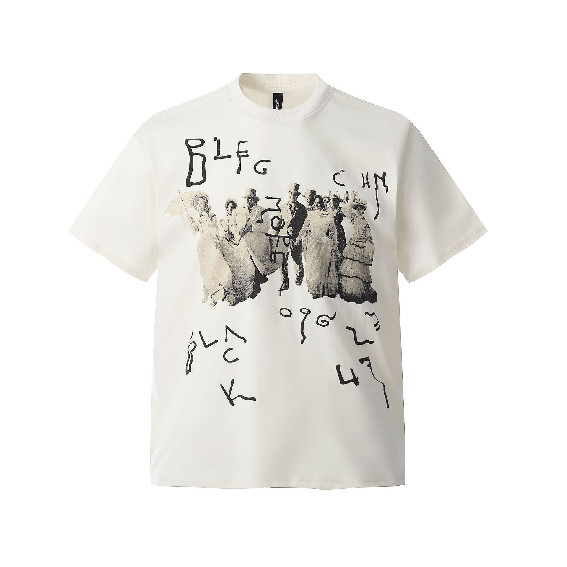 縦馳衣社2025新型夏のアメリカファッション人物プリント男女同金百合ゆるいカジュアルtシャツ