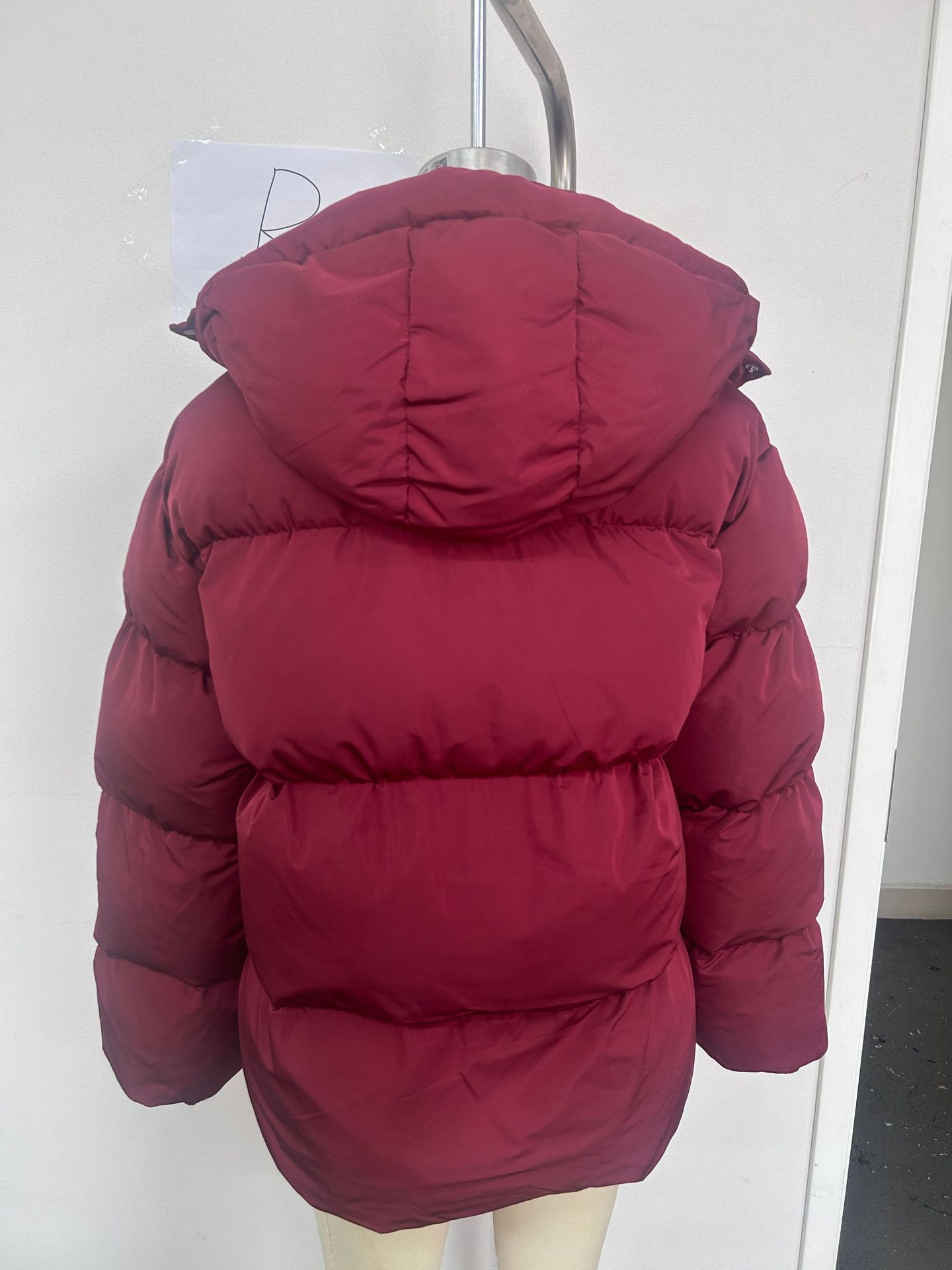 在庫あり--2024年冬 欧米向け越境貿易 ダークレッド ジップアップ 中綿入りジャケット 暖かいコート スタンドカラー 通勤スタイル