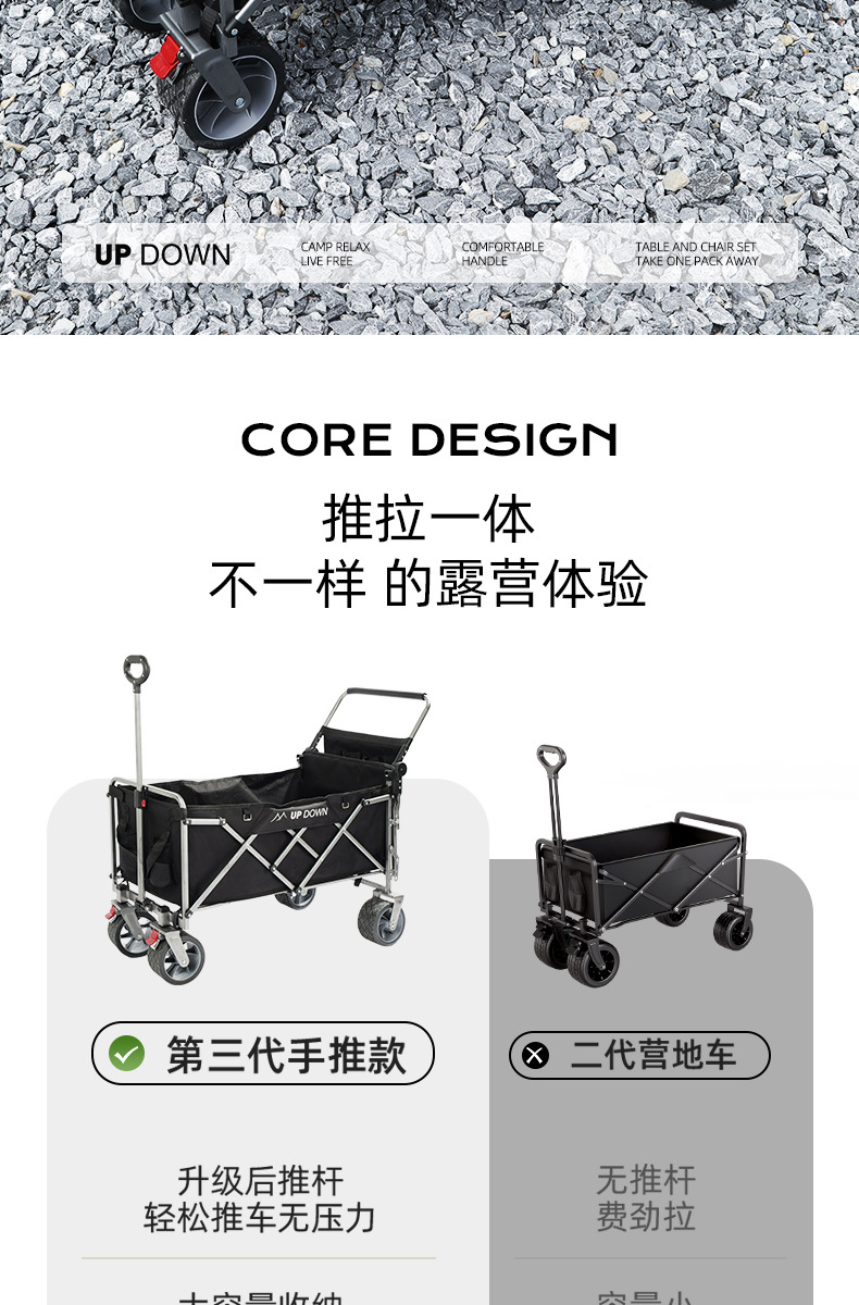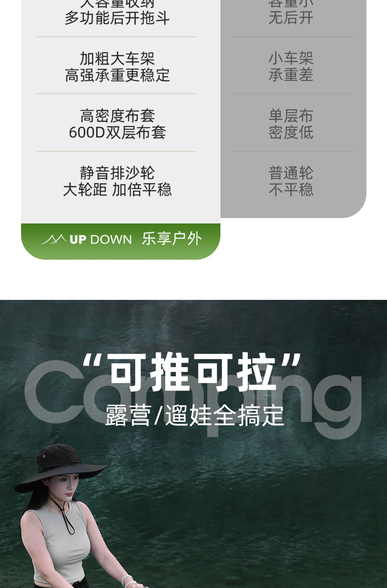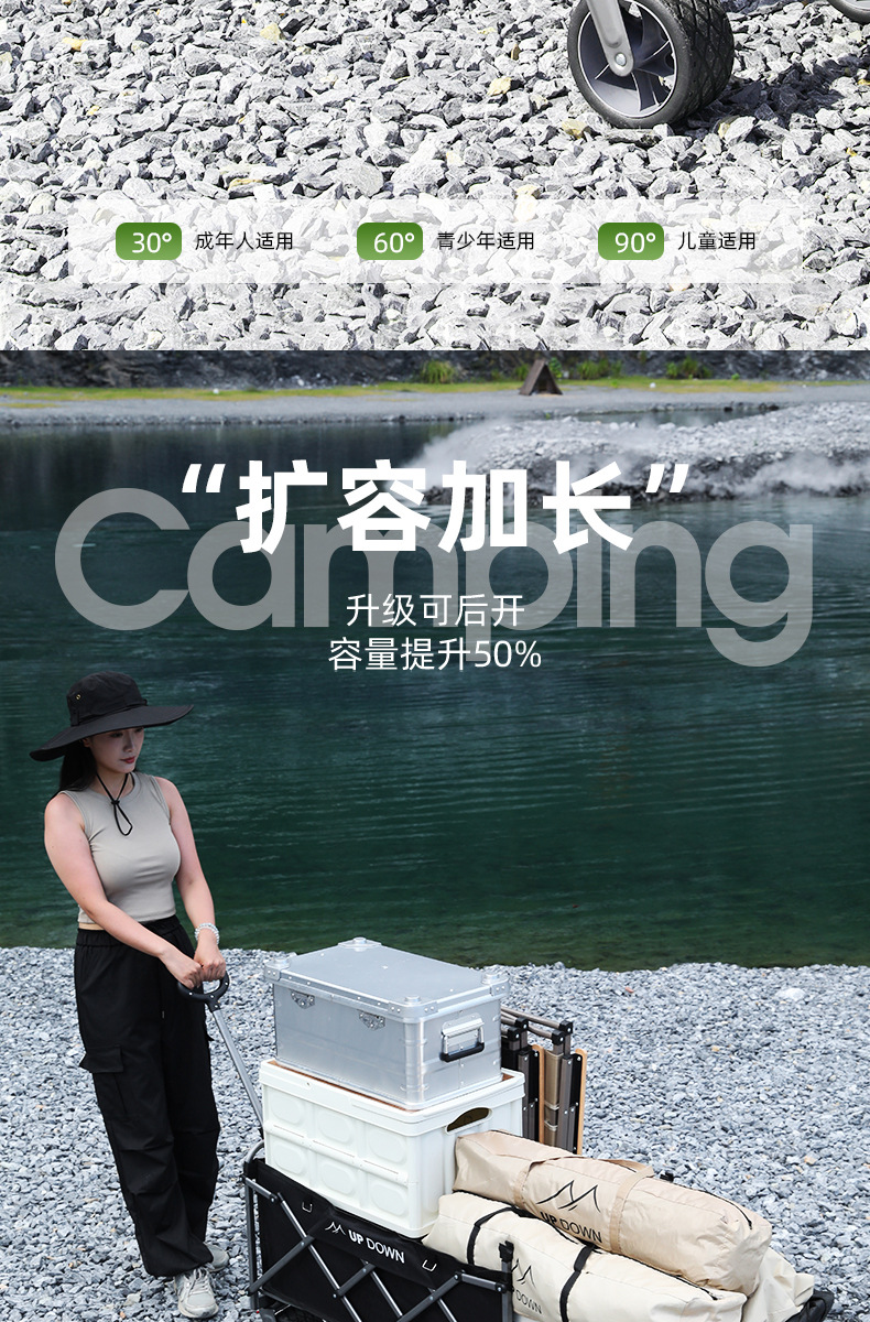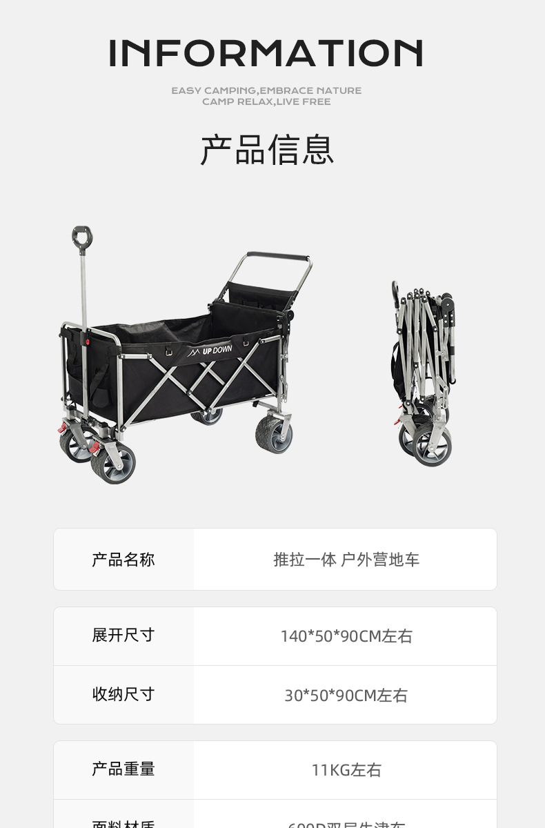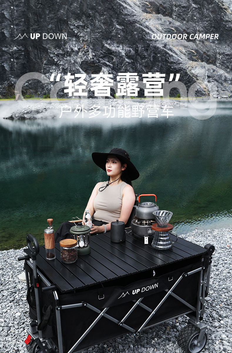 Updown露营车营地拖车推拉一体户外可折叠手推野营野餐车儿童可躺