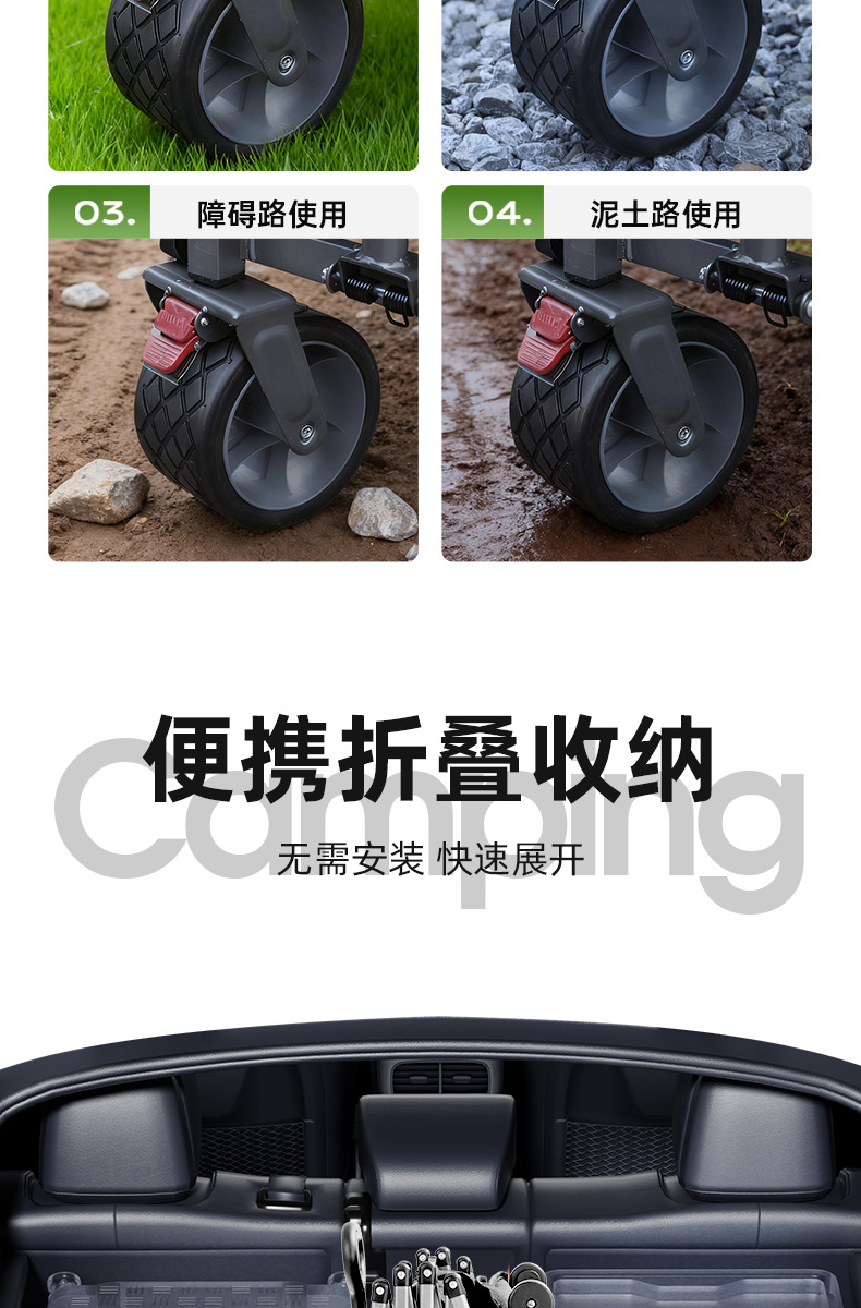 聚拢款露营车户外可折叠推车可拉推营地车野餐拖车野营摆摊小推车