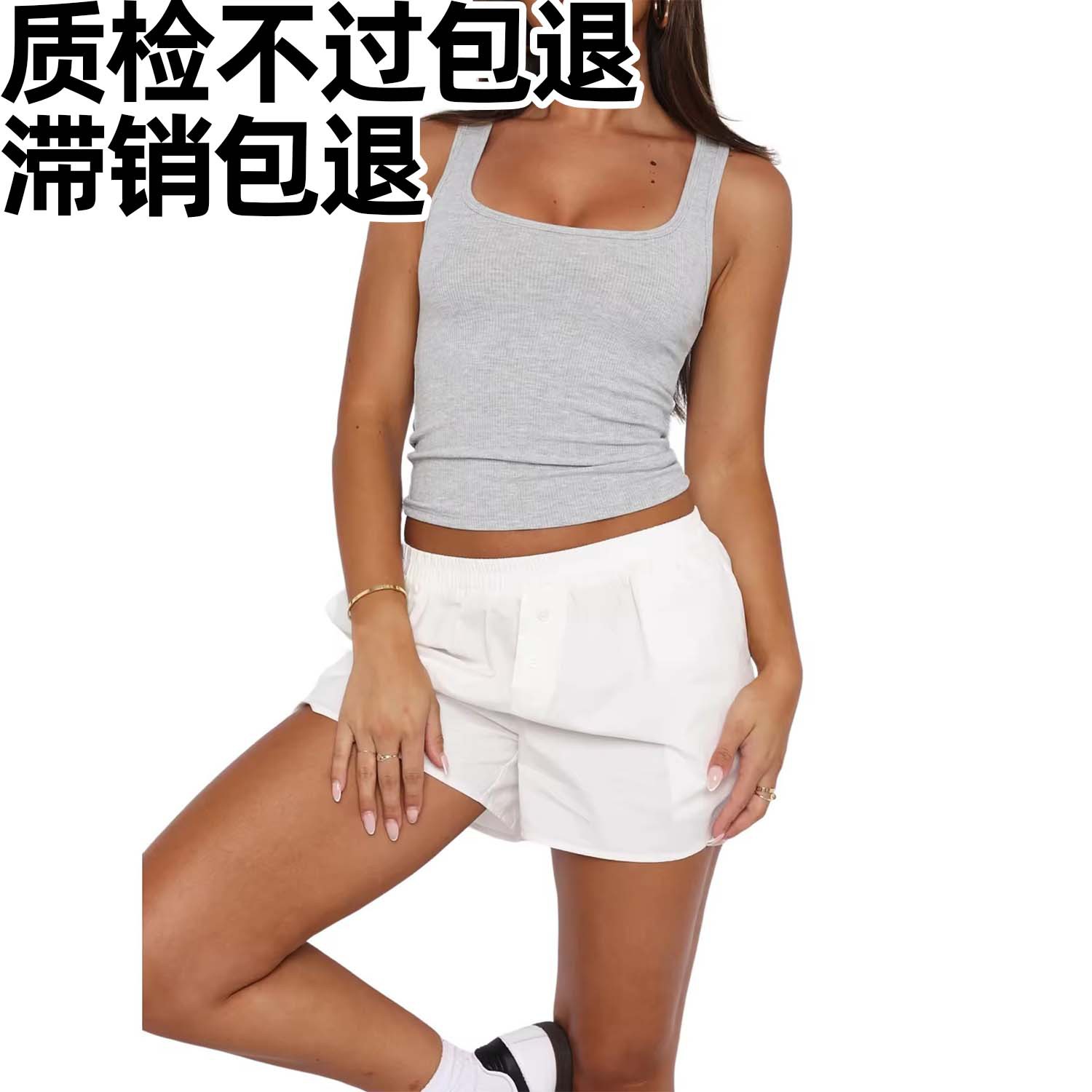 欧美跨境亚马逊吊带背心辣妹夏季外穿方领露脐修身女士内搭衫上衣