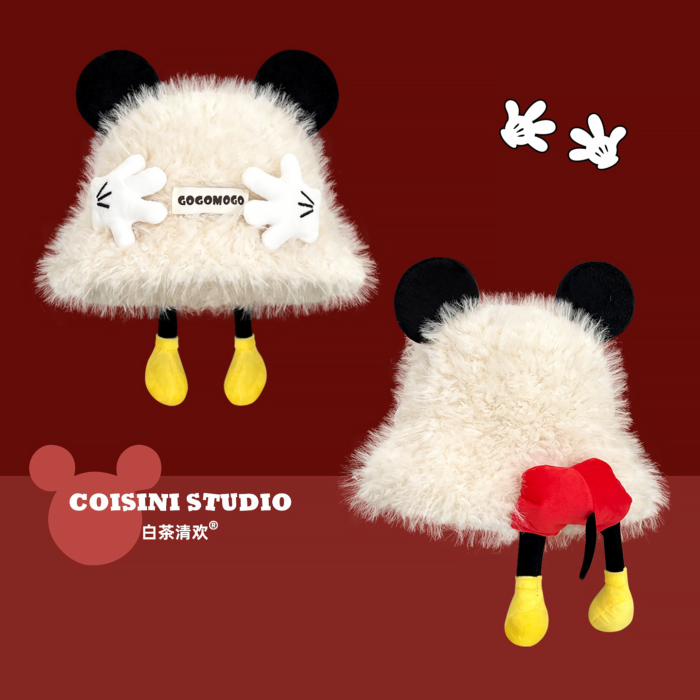 可爱米奇手掌屁屁毛绒渔夫帽子女秋冬毛茸茸甜美保暖护耳学生盆帽