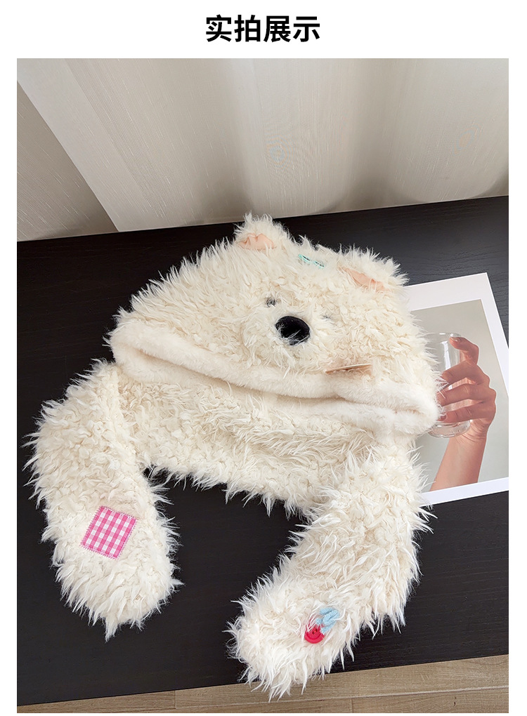 可爱毛绒西高地小狗帽子围脖一体两件套冬季加厚保暖护耳帽雷锋帽