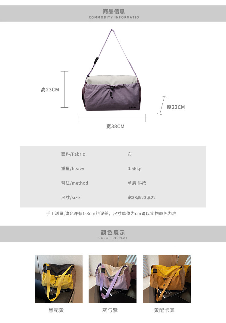短途出差轻便手提包单肩大容量旅行包运动健身干湿分离行李收纳袋
