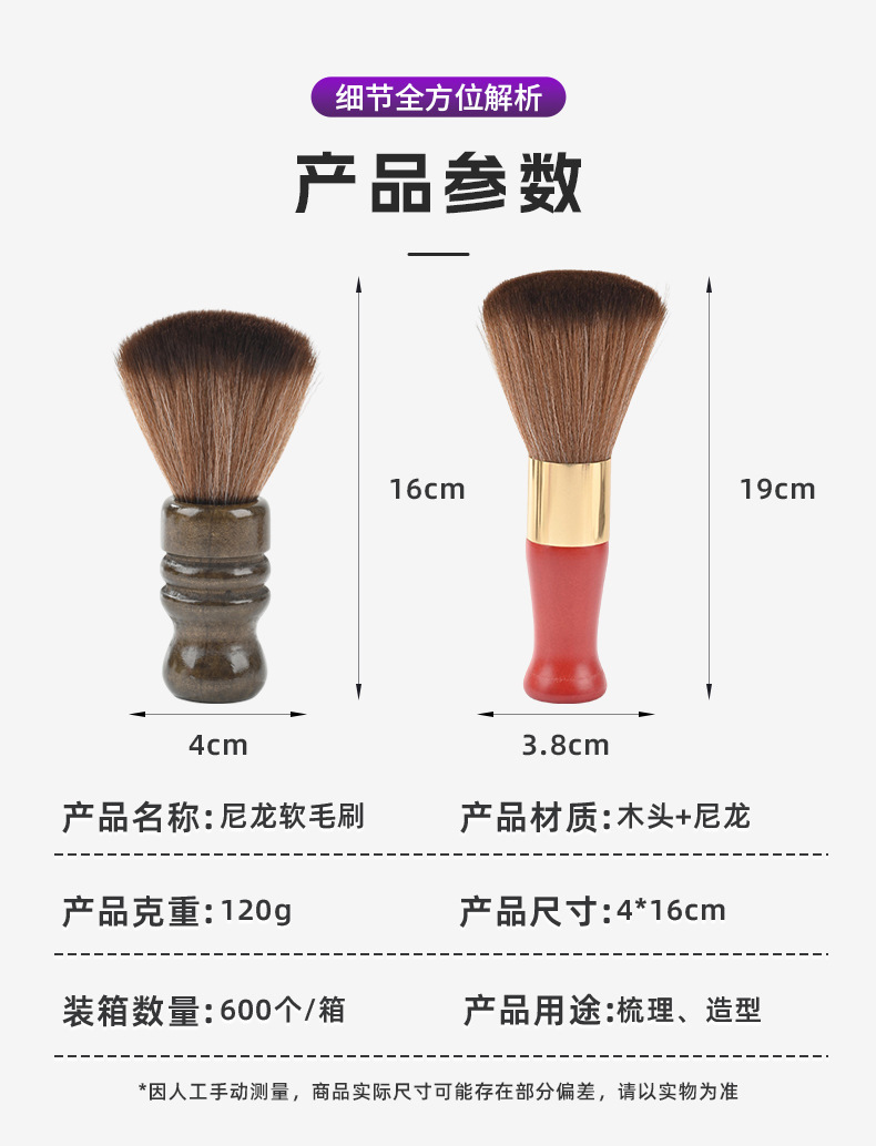 跨境尼龙软毛刷胡须刷碎发掸刷碎发扫发头发清洁刷实木理发碎发刷