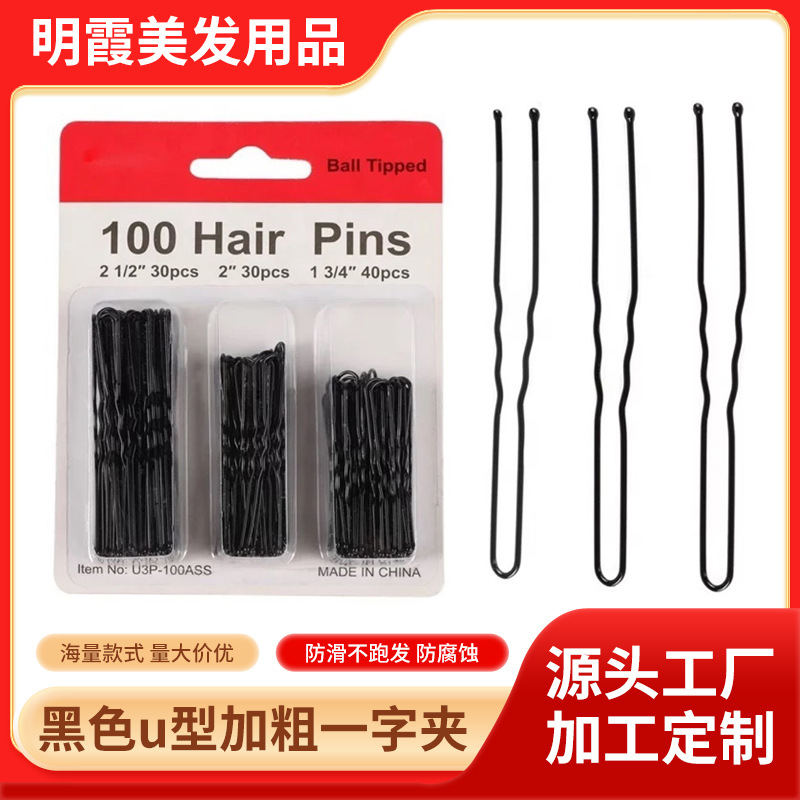 黒いu型のクリップは髪を刺します。髪を太く固定します。