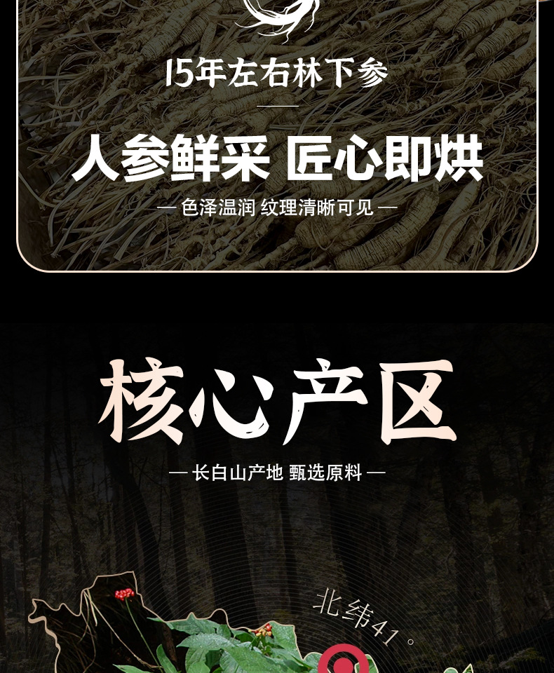 野山参礼箱入り高齢老参長白山生晒林下参整枝移山参無接合人参乾参