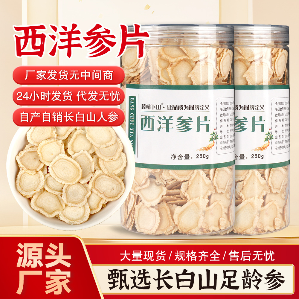 長白山瓶西洋参片250グラム卸売り東北特産足乾双篩人参スライス西洋参