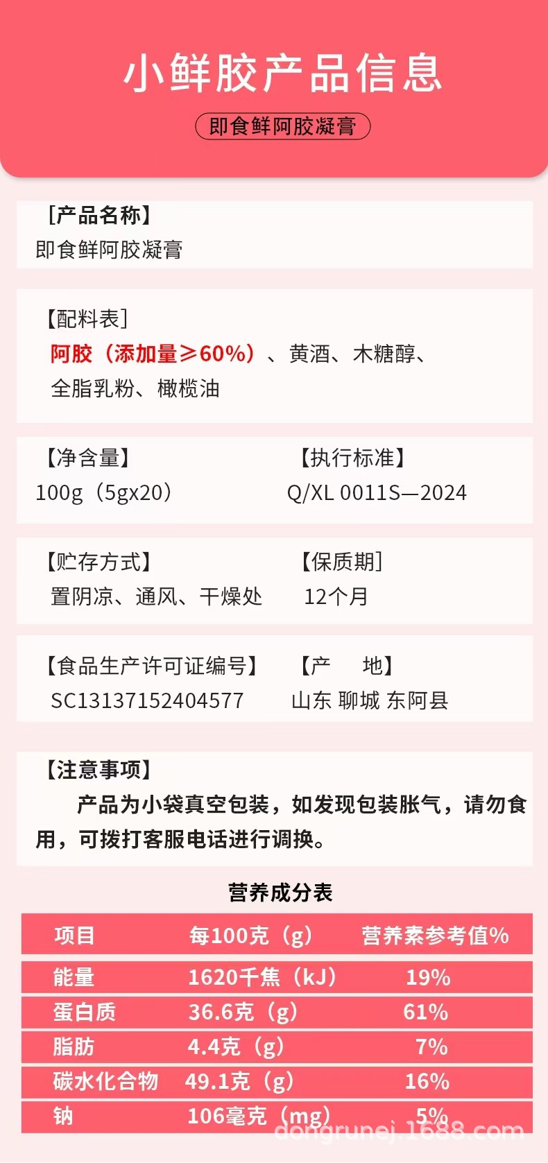 山东鲜阿胶即食小鲜胶阿胶凝胶膏即食鲜阿胶块可牌贴东阿小鲜胶