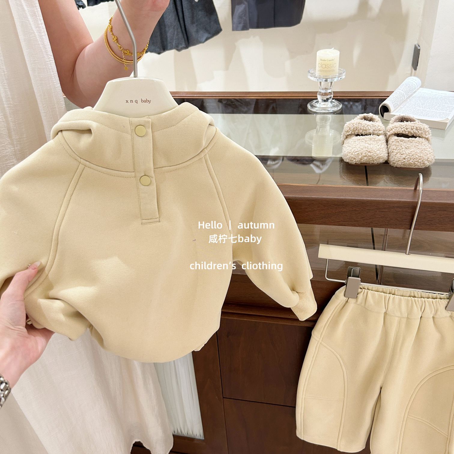 【咸柠七】女童洋气秋冬连帽卫衣套装时髦加绒阔腿裤韩系两件套