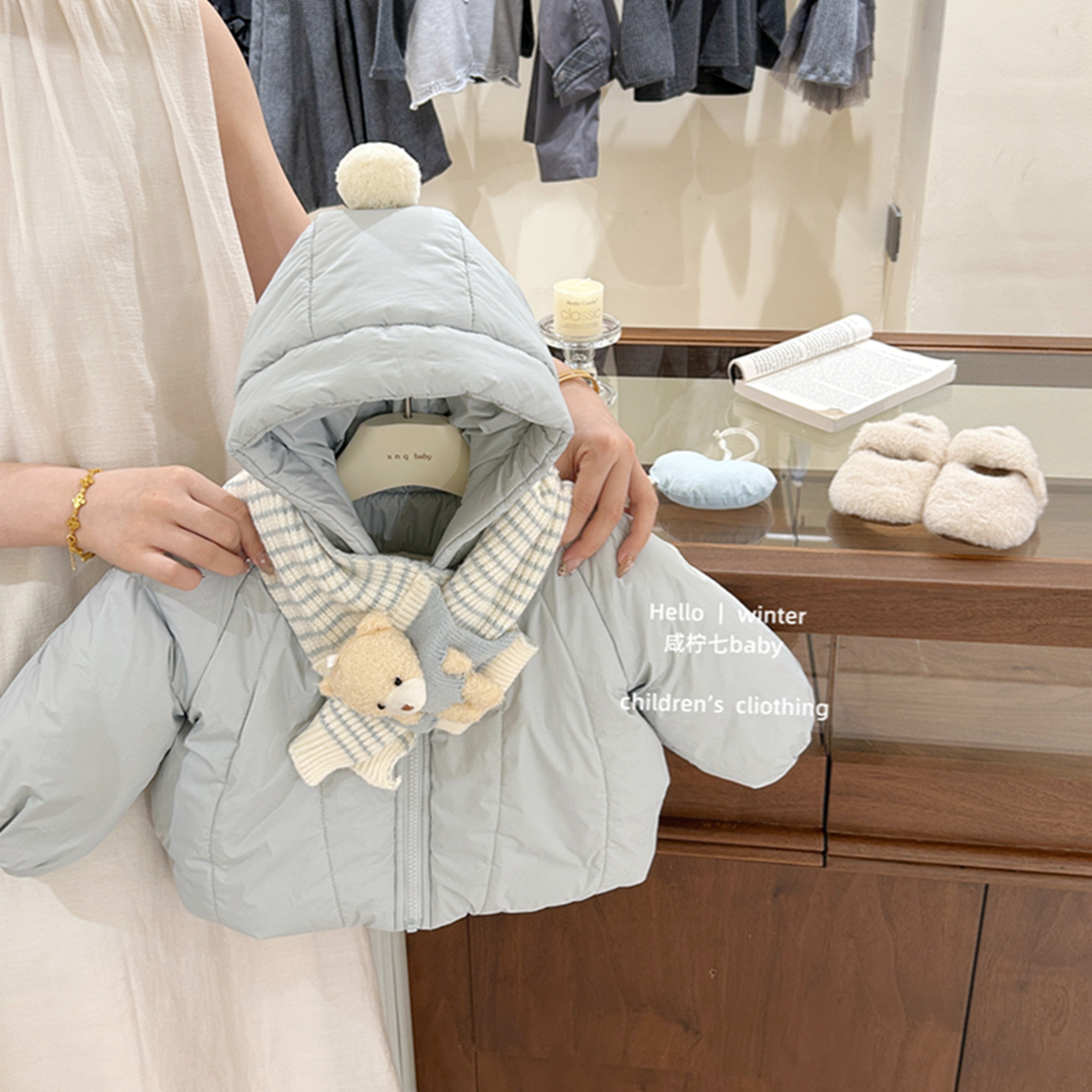 【咸柠七】奶蓝小熊!原创女童棉服外套冬装连帽棉衣加绒加厚上衣