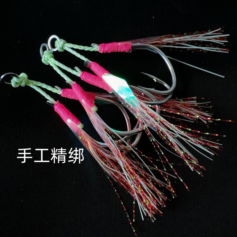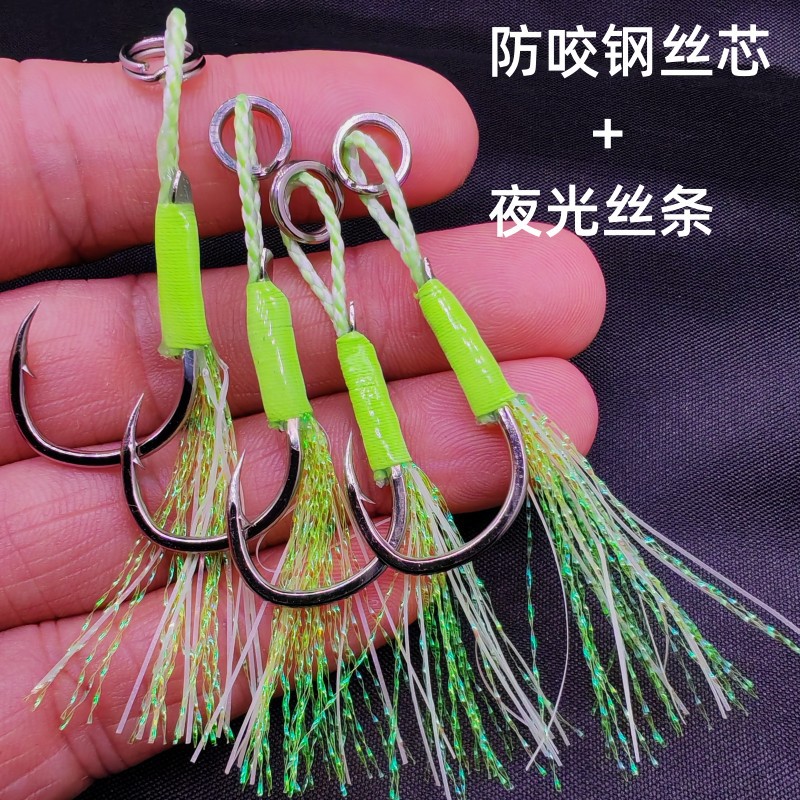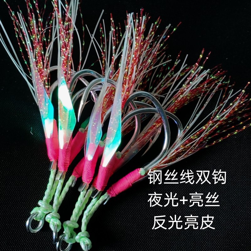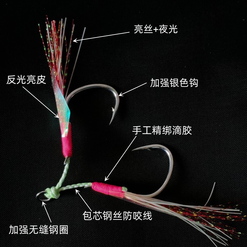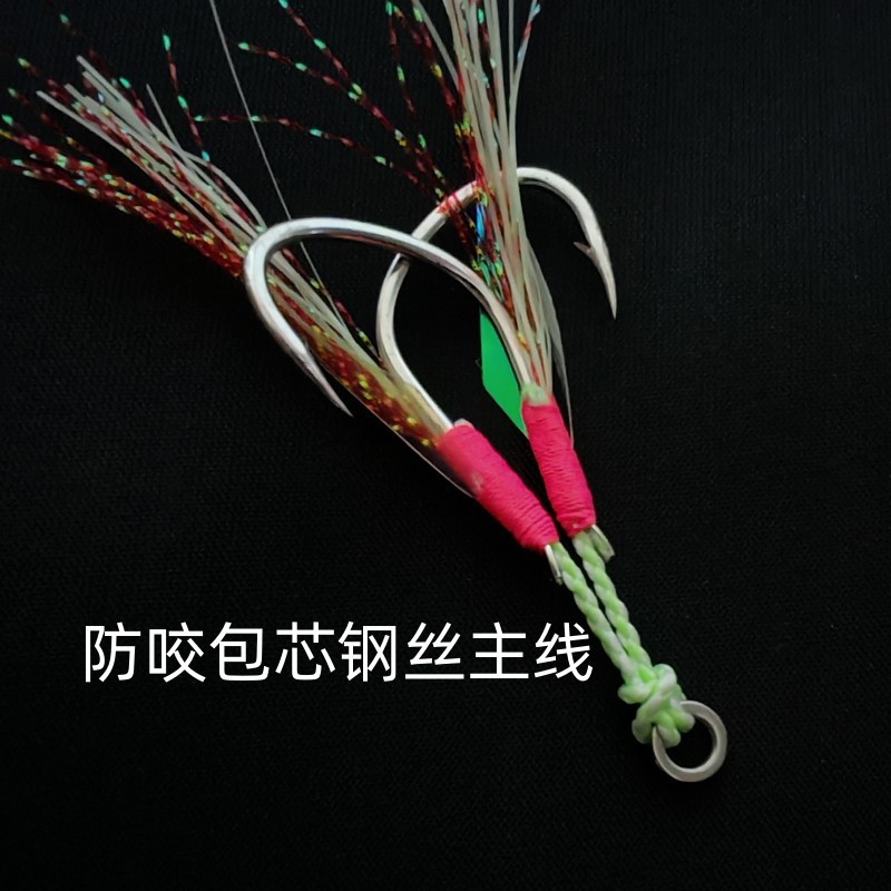 防咬包芯钢丝线铁板双钩无缝圈仿鱼皮钩夜光亮丝船钓海钓马鲛鱼钩