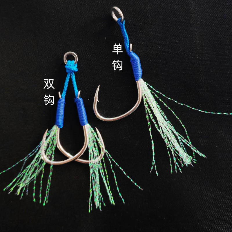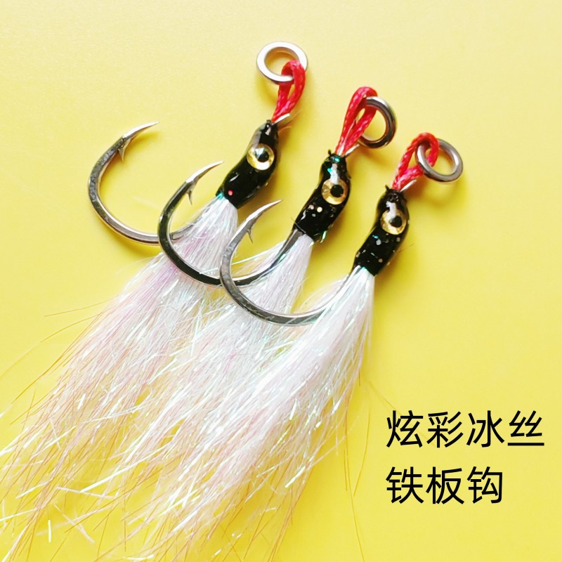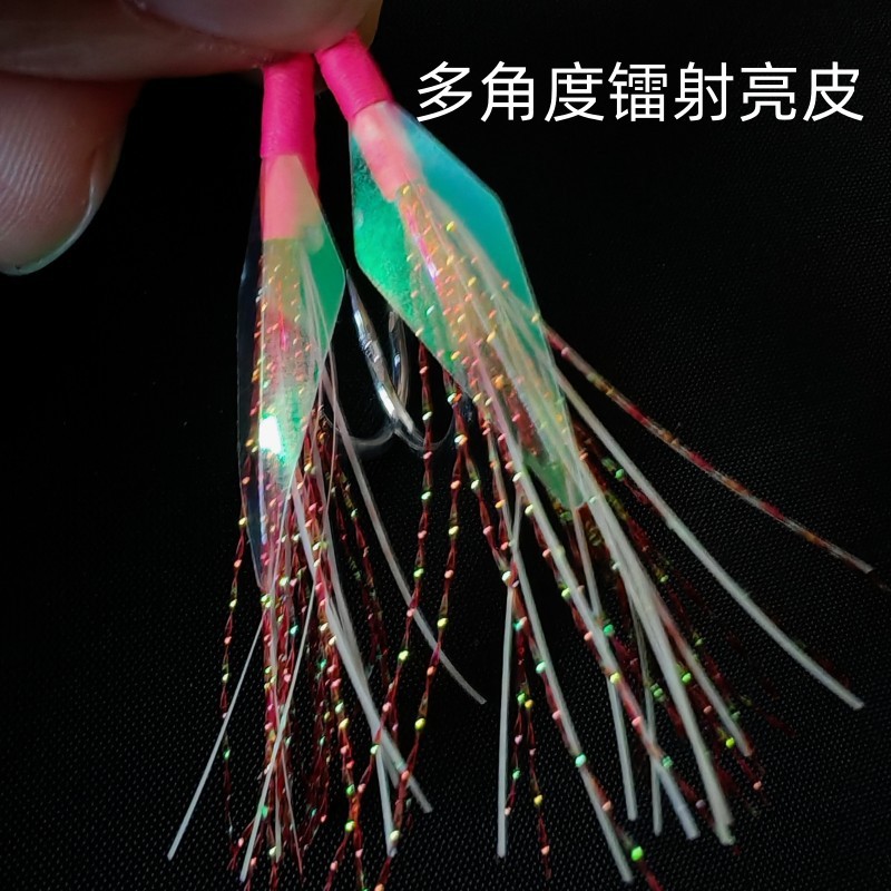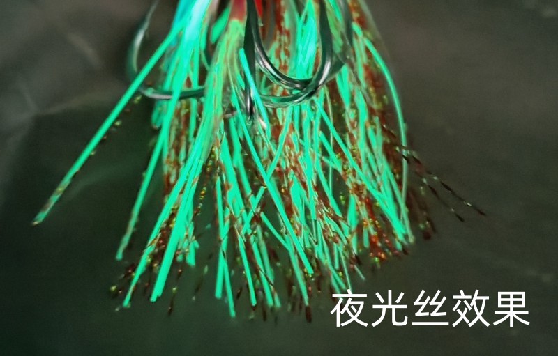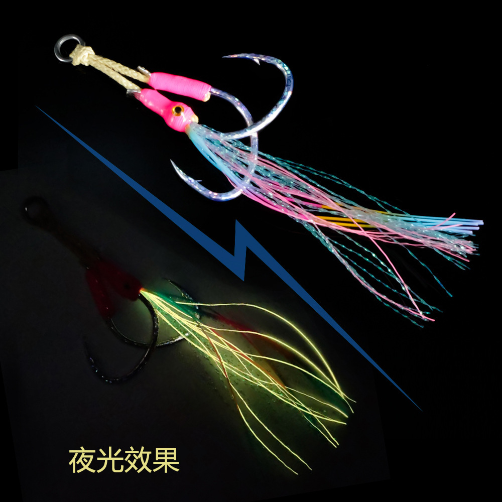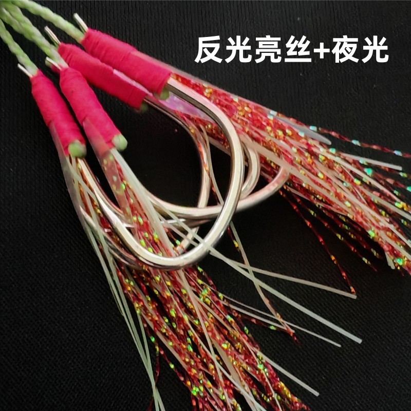 夜光铁板钩双钩烫金鱼钩变色单带硅胶反光丝夜光亮丝路亚船钓
