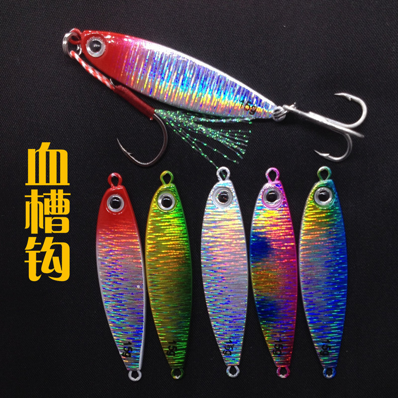 路亜鉄板餌爆釣岸投げ鉄板裸片双フック鉄板餌血溝フックスズキ口黒魚