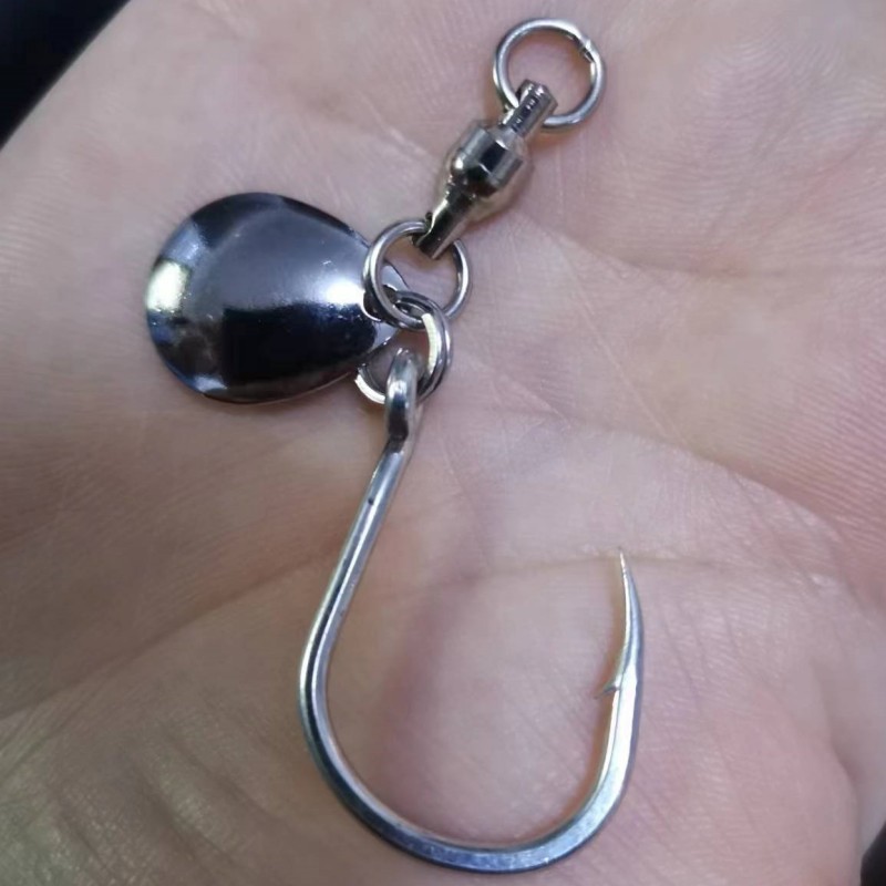 铁板烫金变色双沟带旋转亮片 内置软钢丝 路亚海钓大物鱼钩 A11