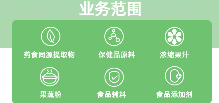 [应用范围] : 普通食品/饮料、 功能性食品、压片糖果、代餐粉、食品色素、固体饮料、烘焙食品、日化原料、养殖业/饲料。