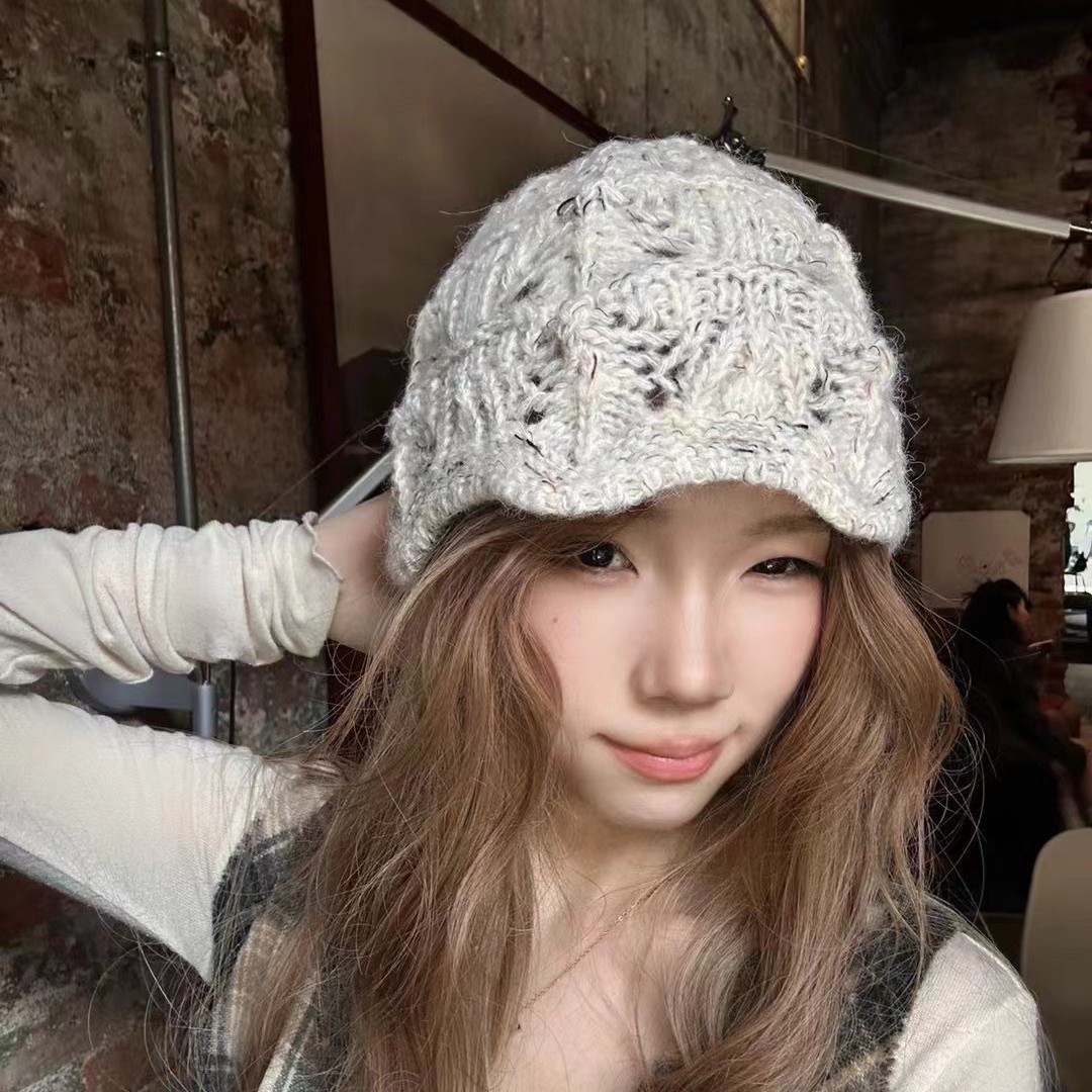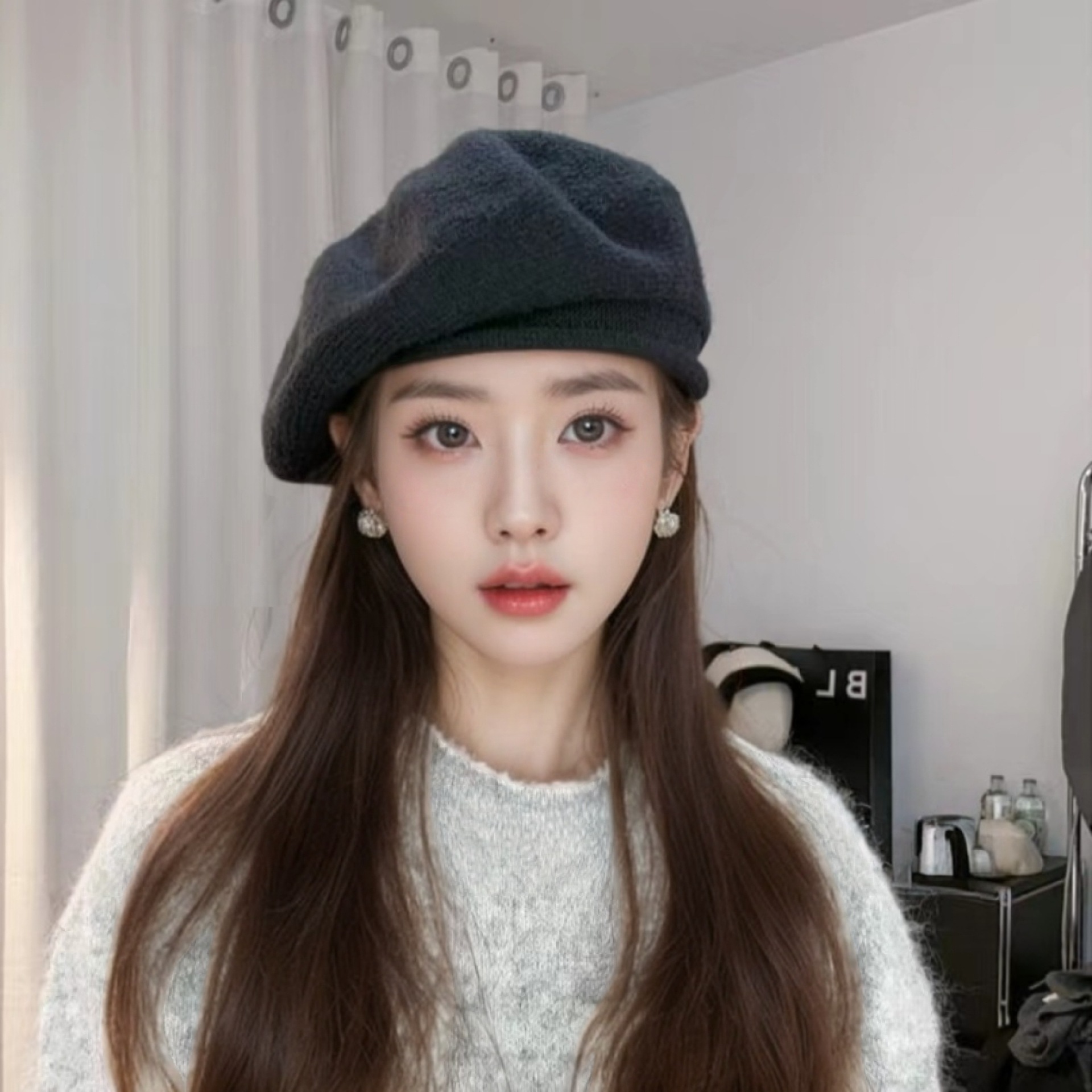 新品の蓬蕾帽ins韓系百合ネット赤巻き辺ニットベレー帽の顔が痩せている画家帽の女性