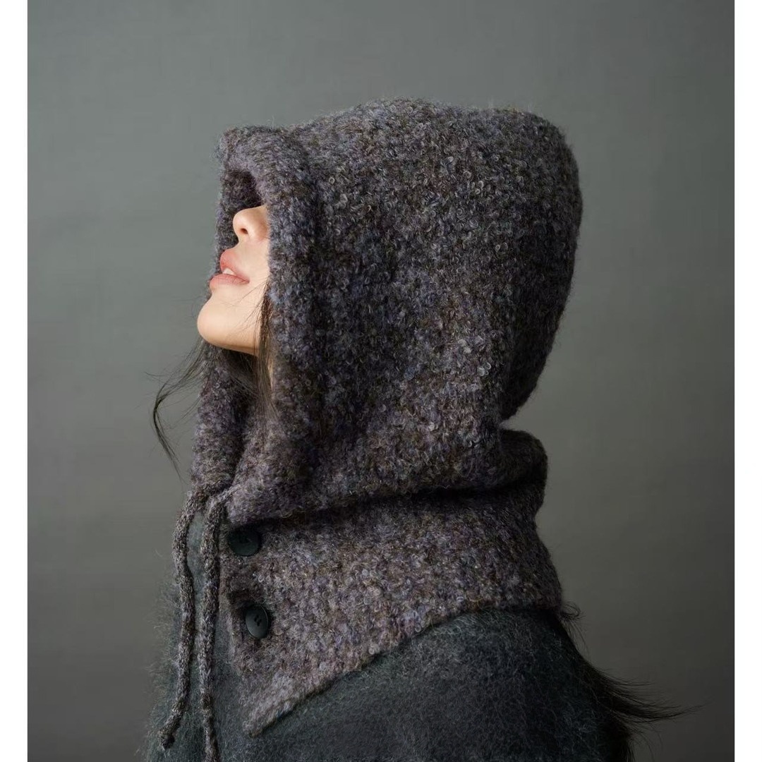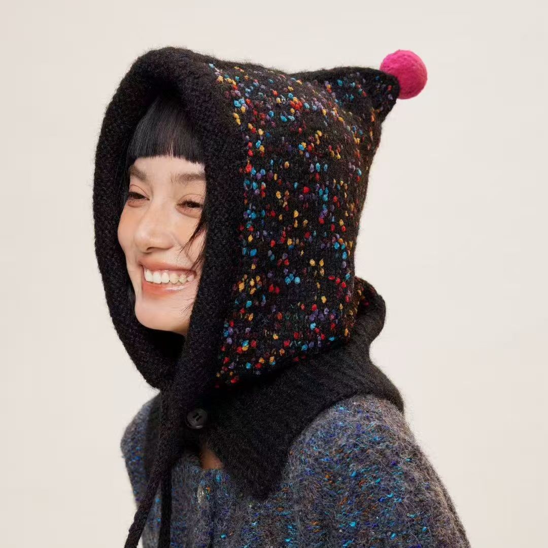 羊毛混纺巴拉克拉法帽女秋冬防风保暖护耳帽子围脖一体针织毛线帽