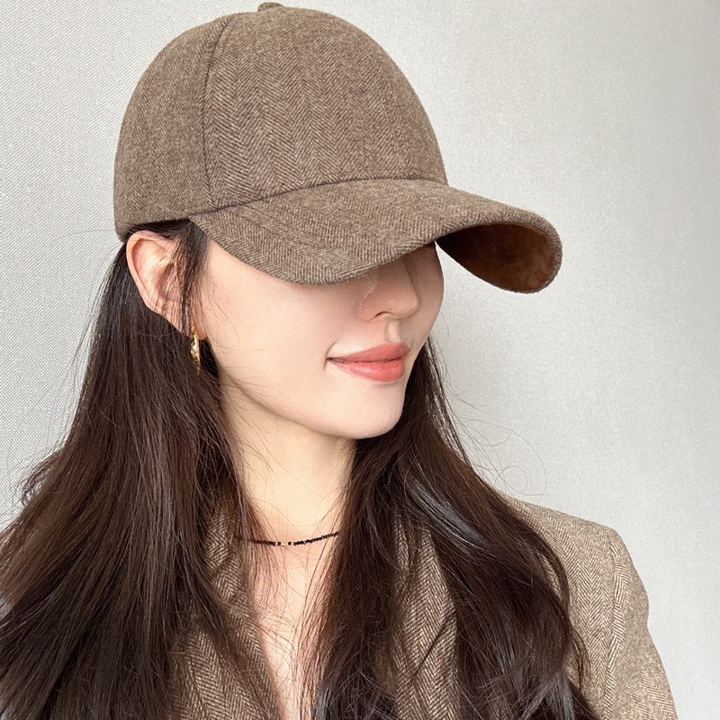 秋冬の立体感のあるウールヘリンボーン柄ハードトップ野球帽、小顔効果、厚手、男女兼用、英国風キャップ
