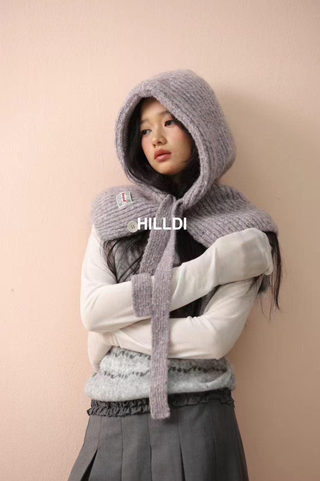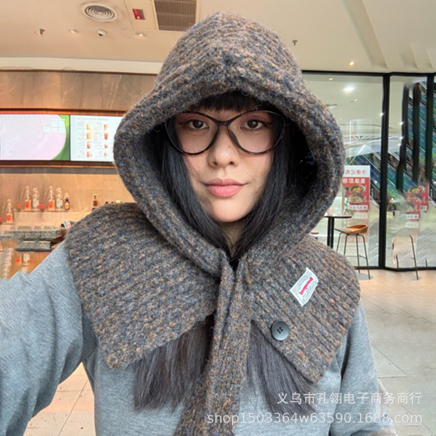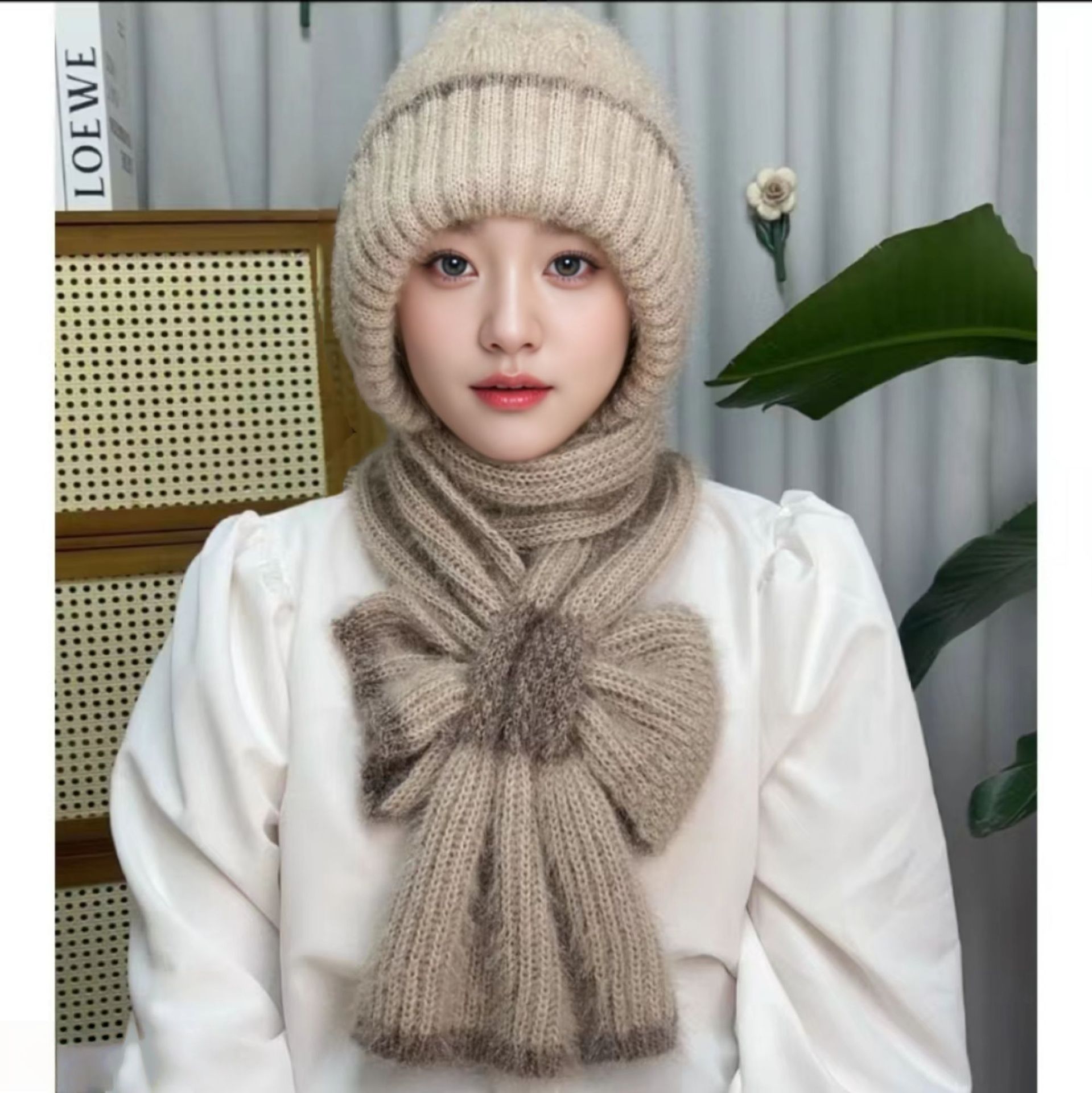 韩国巴拉克拉法帽女2024年秋冬季保暖帽子围脖一体护耳毛线针织帽
