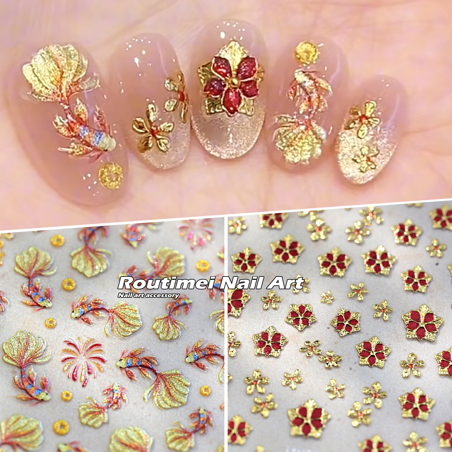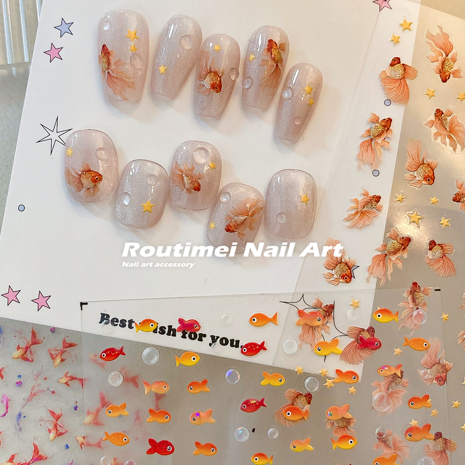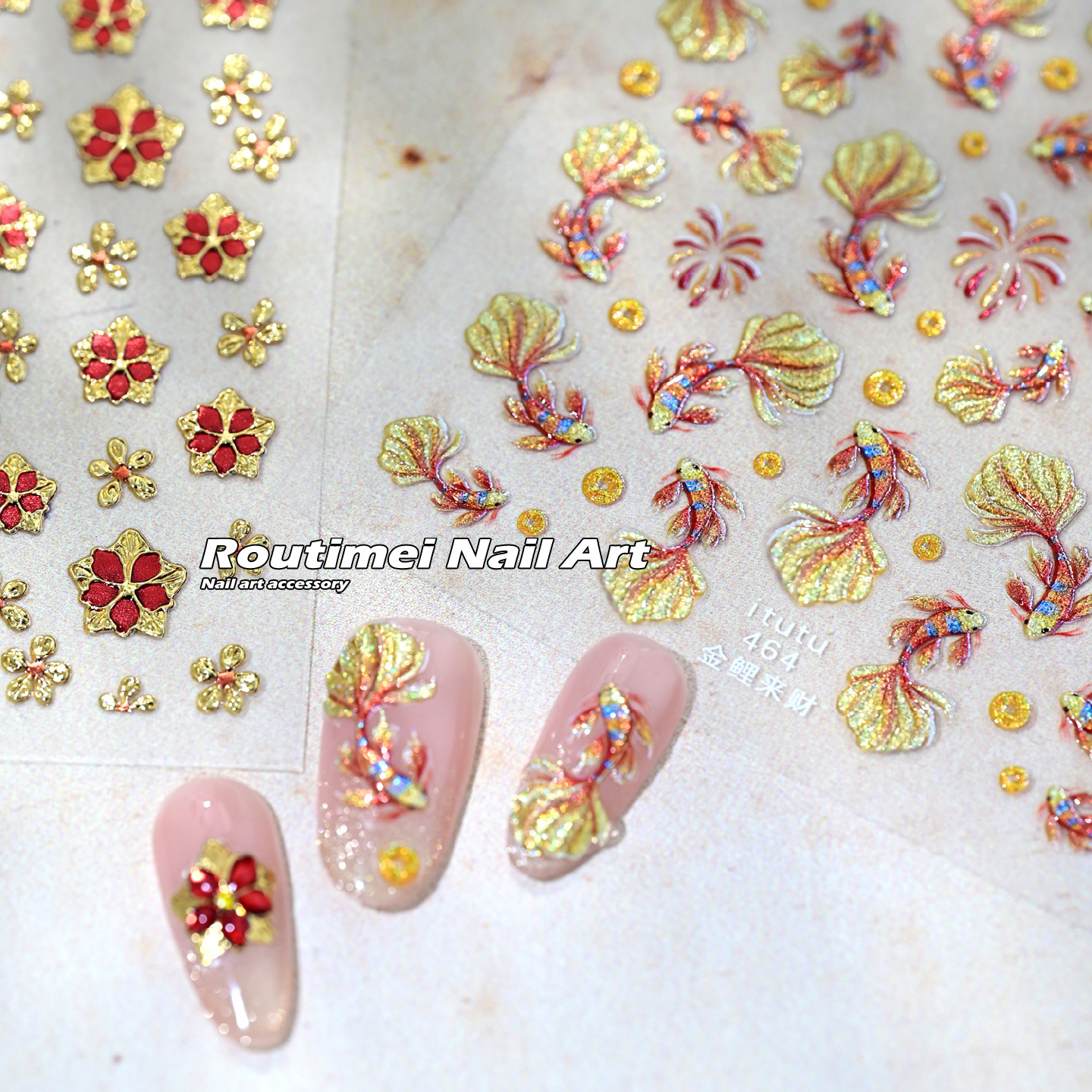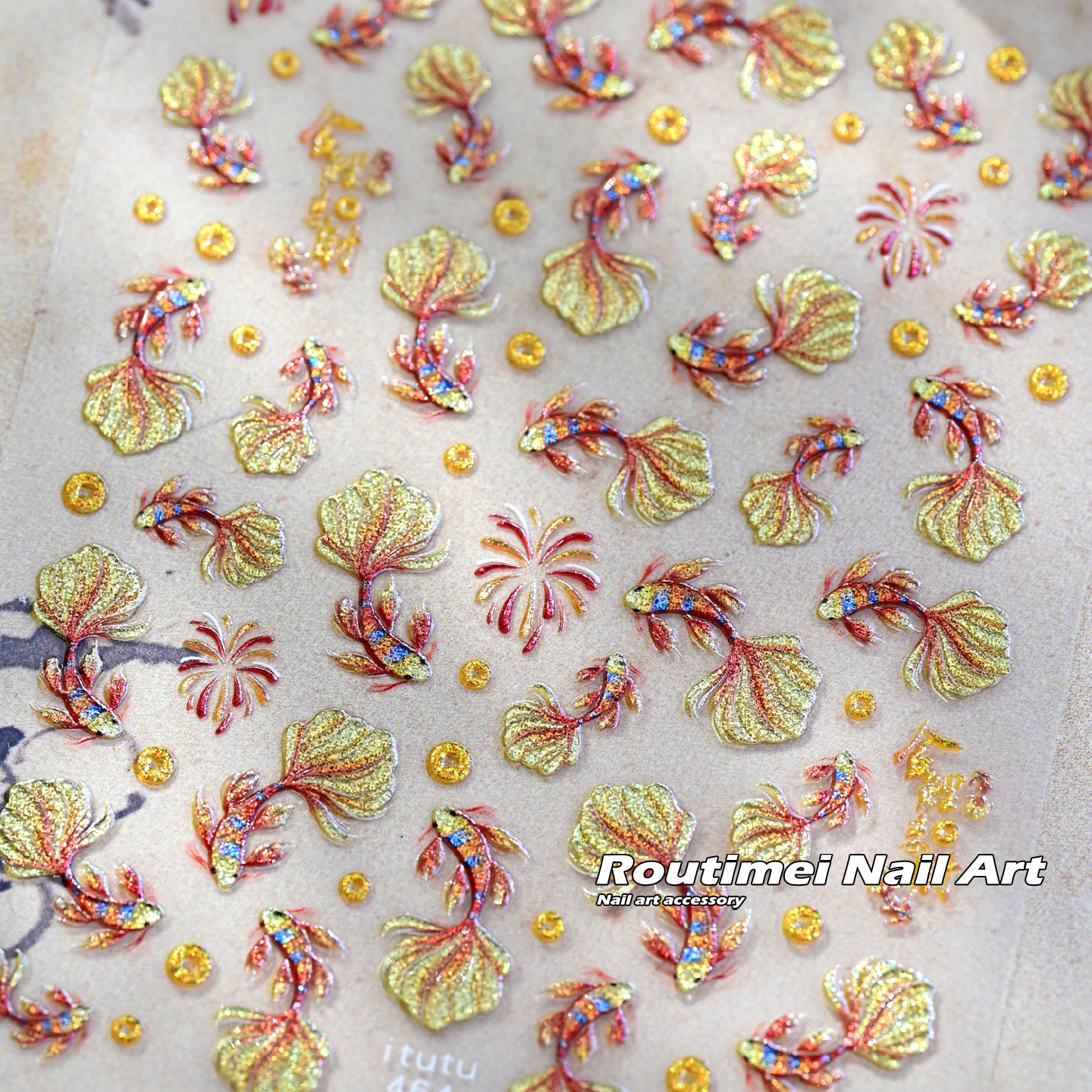 ネイルアートステッカー 新しい赤鯉金魚シリーズ レリーフ立体ゼリースタイル 財運を引き寄せる粘着裏地付き 小さな鯉