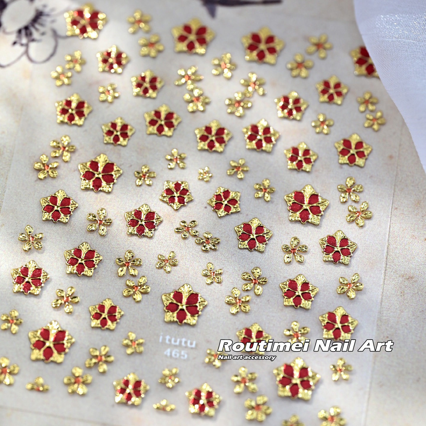 美甲贴纸新款金边高级花朵招财锦鲤炫彩小烟花新年爆款美甲装饰贴