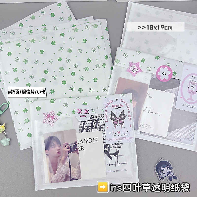 四叶草透明膜高级感透明膜纸袋大容量简约出卡打包袋礼物装饰包装