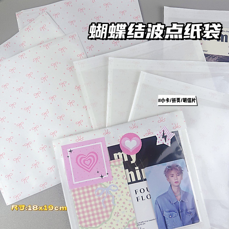 蝴蝶结波点透明膜高级感半透明膜纸袋简约出卡打包袋礼物装饰包装