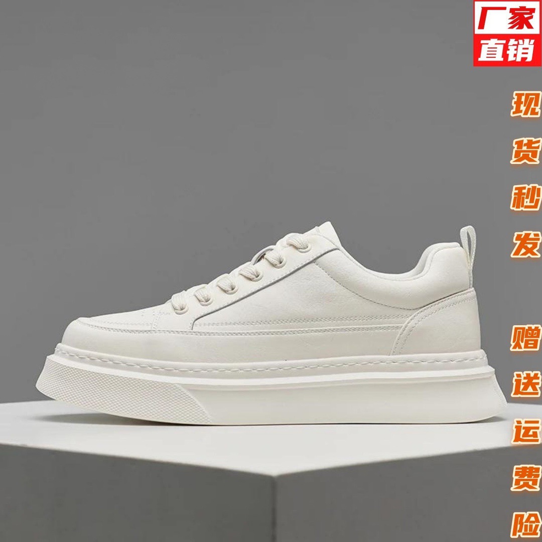 HAOB 新しいカジュアルスニーカー、スポーツ、多用途、通気性、春の厚底トレンディシューズ、白いメンズ白い靴、ラウンドトゥ