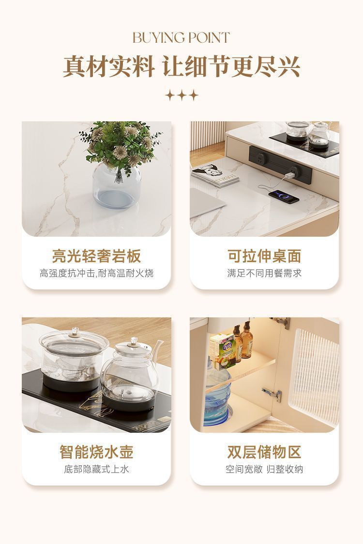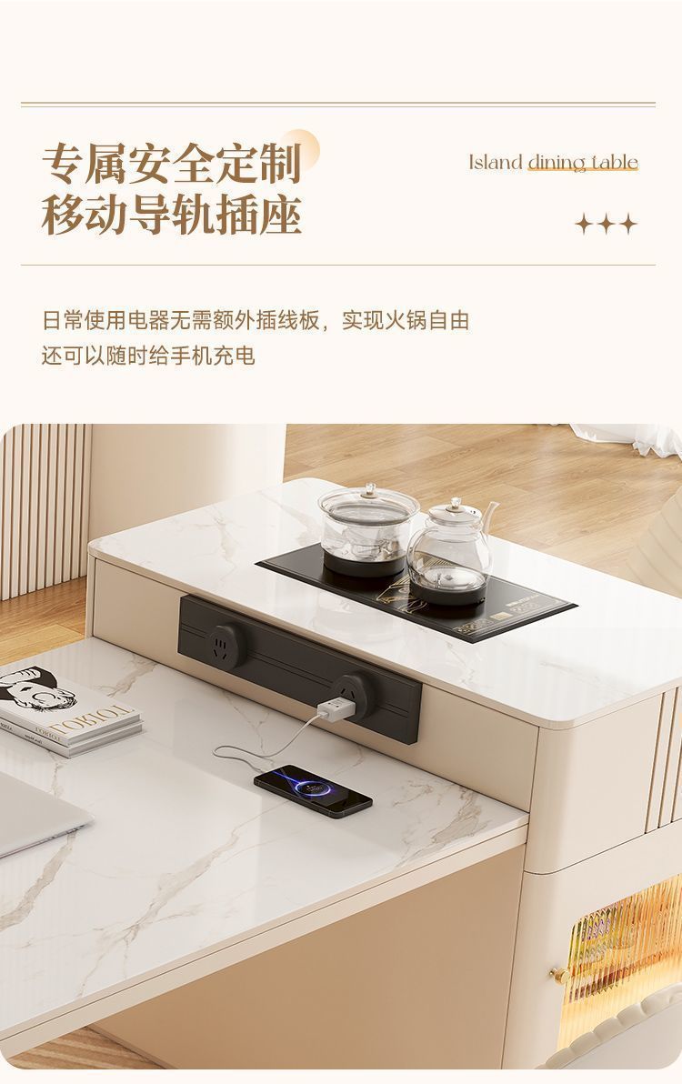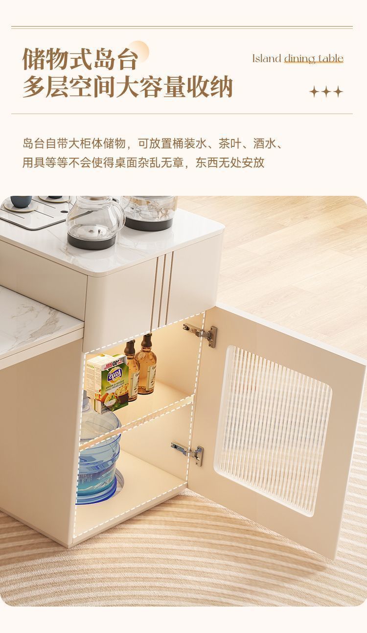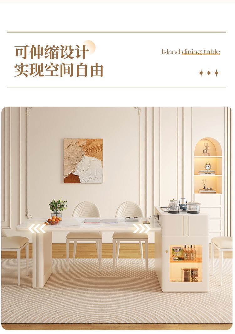 奶油风岛台岩板餐桌可伸缩简约多功能储物岛台柜组合家用吃饭桌子