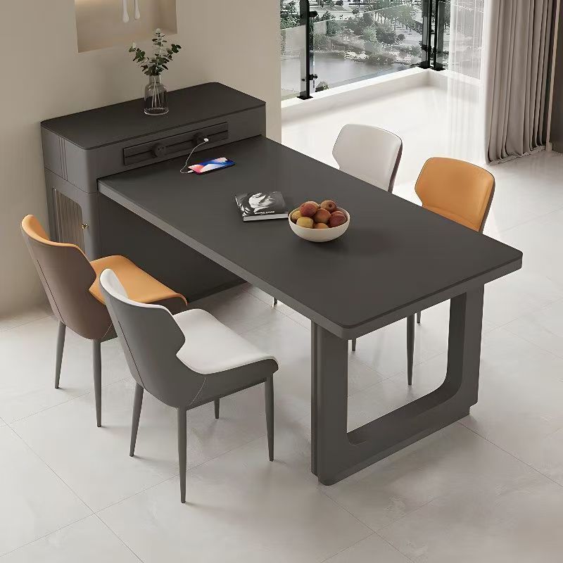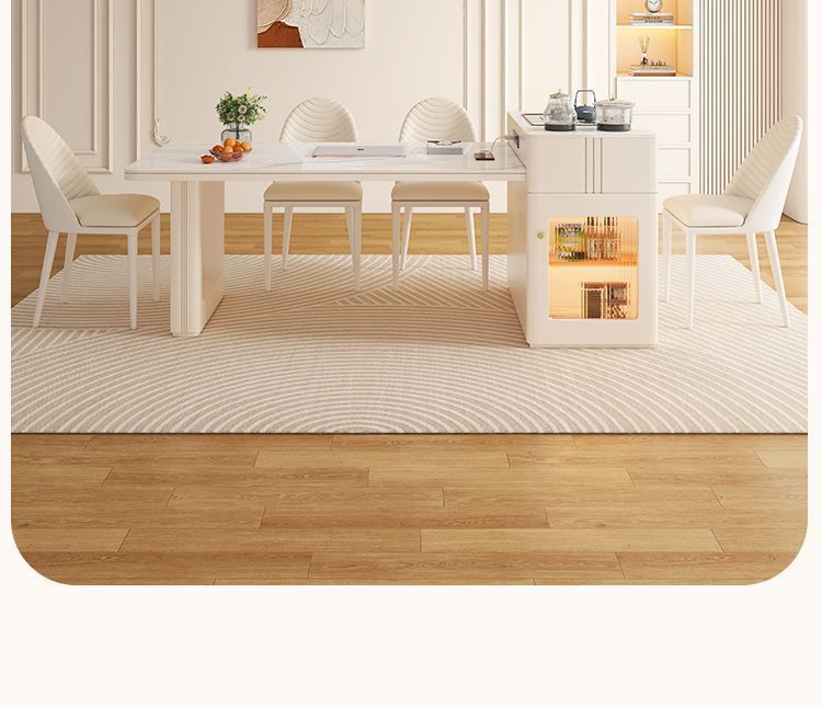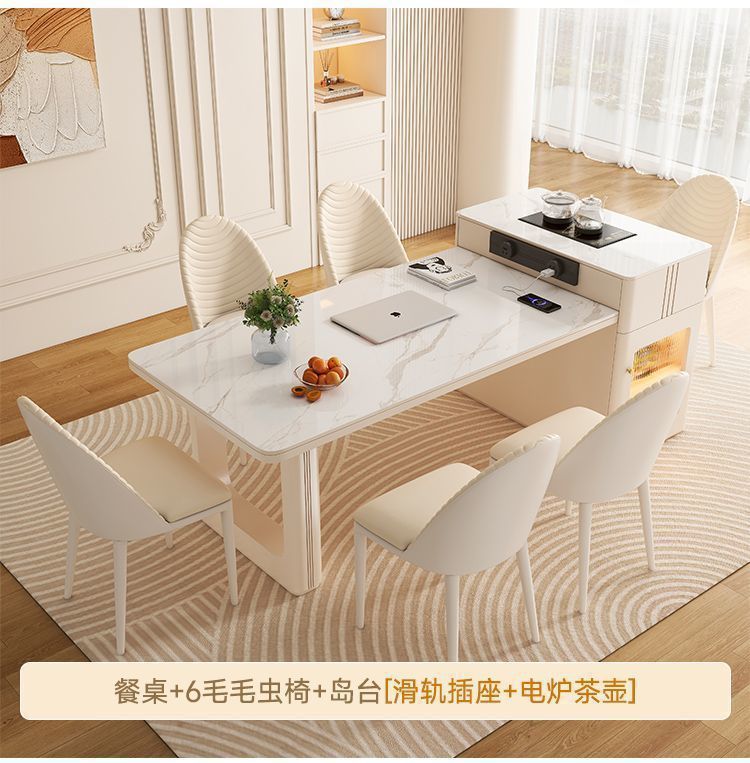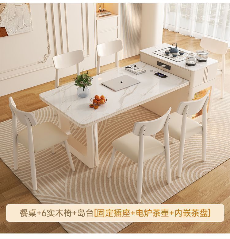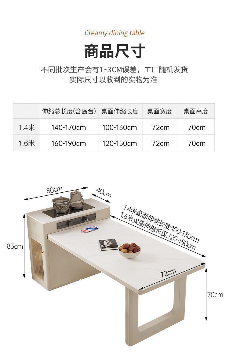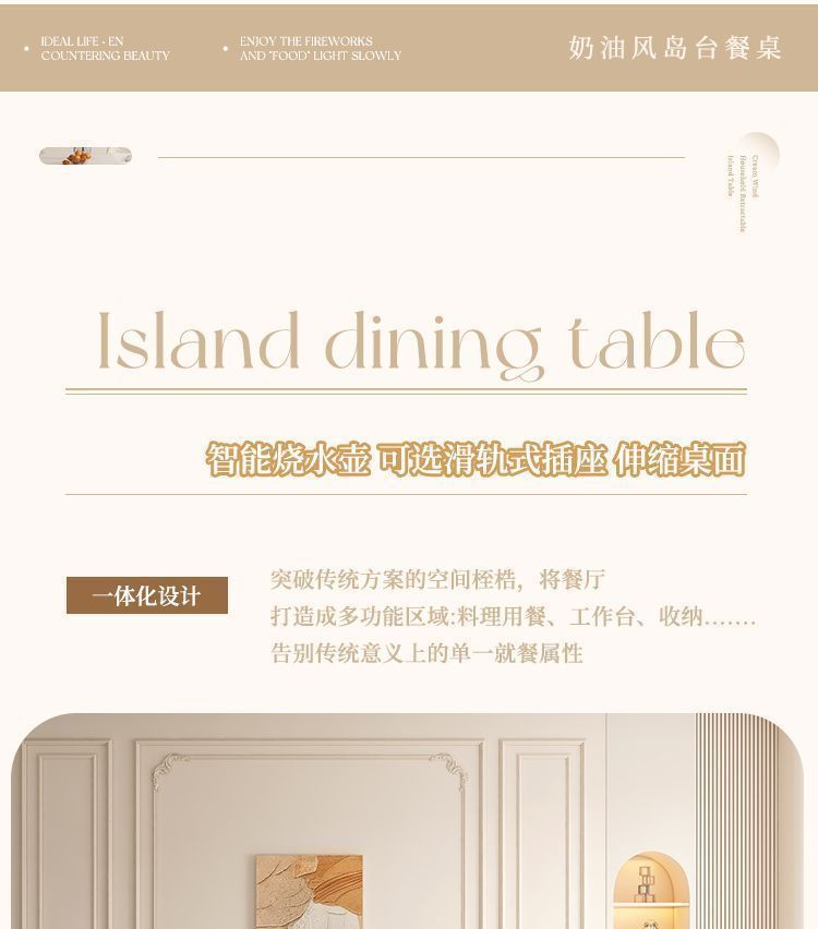 奶油风岛台岩板餐桌可伸缩简约多功能储物岛台柜组合家用吃饭桌子