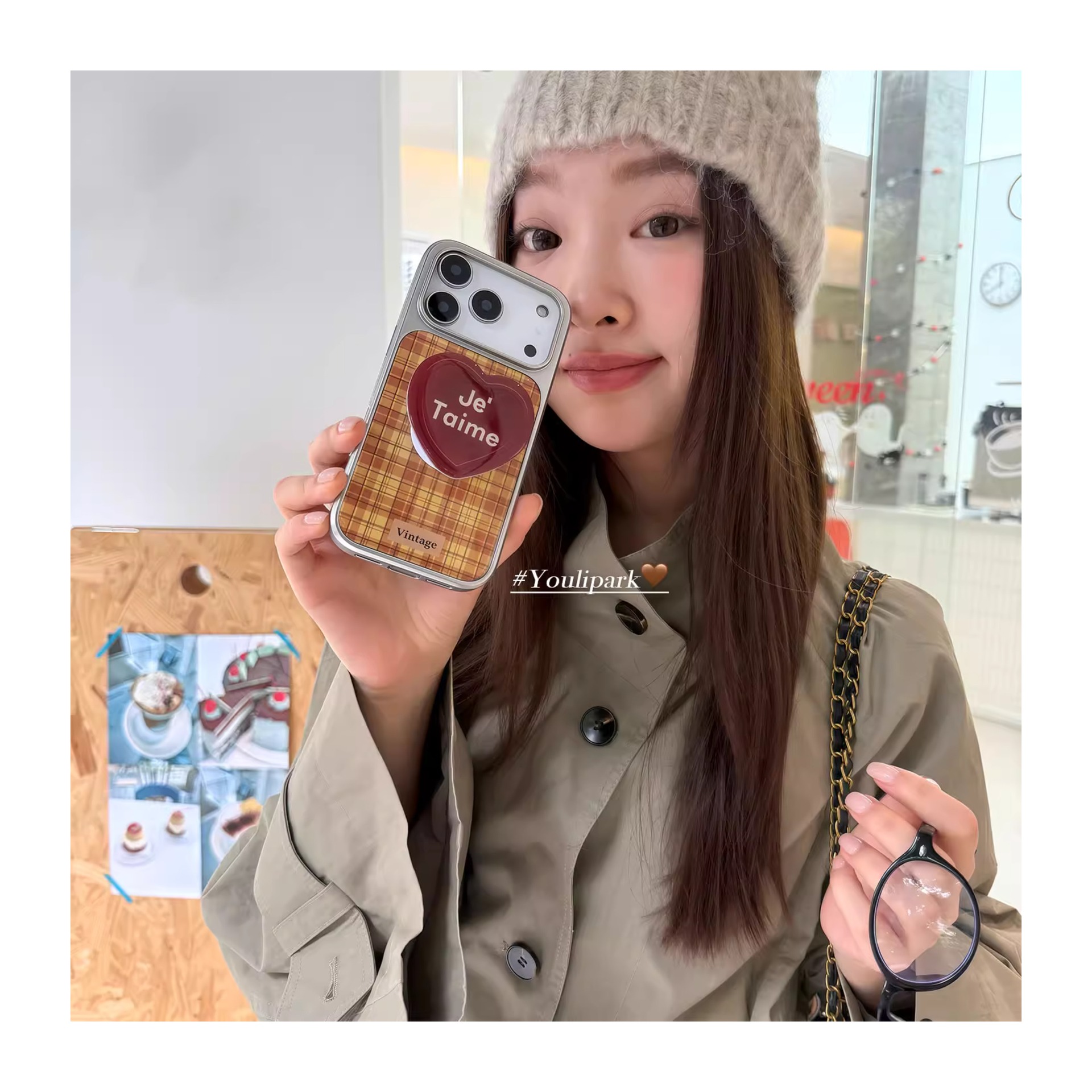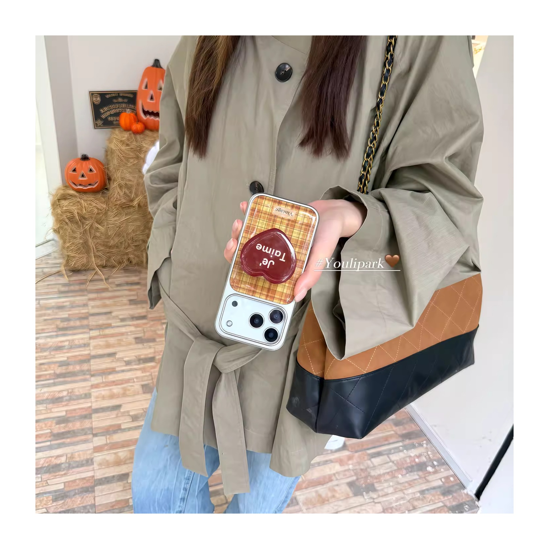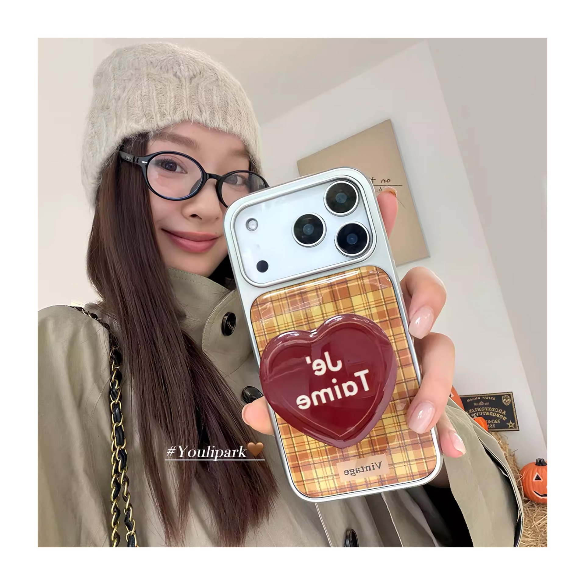由里公园ins韩系秋冬栗子棕格纹爱心支架17适用17pro苹果17ProMax