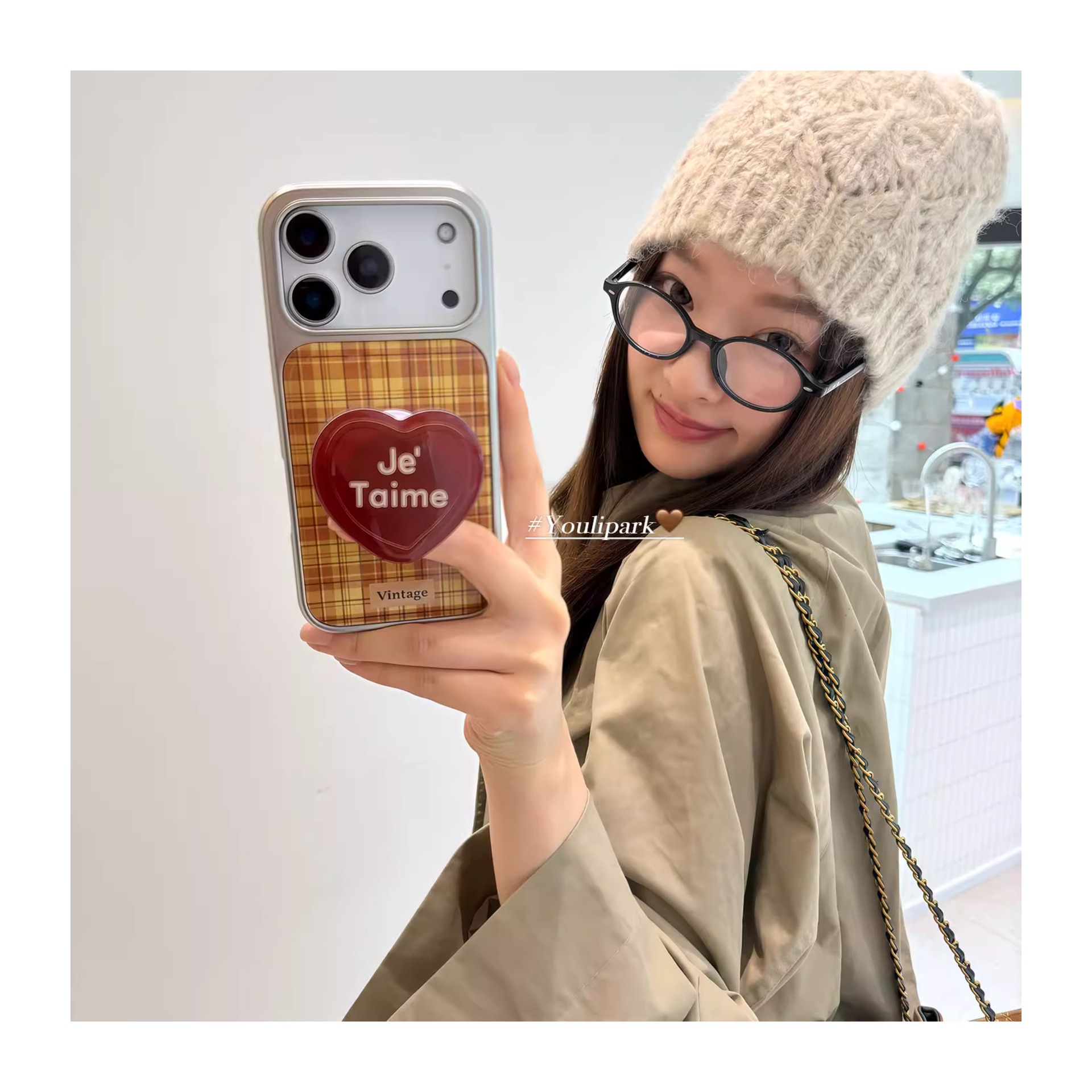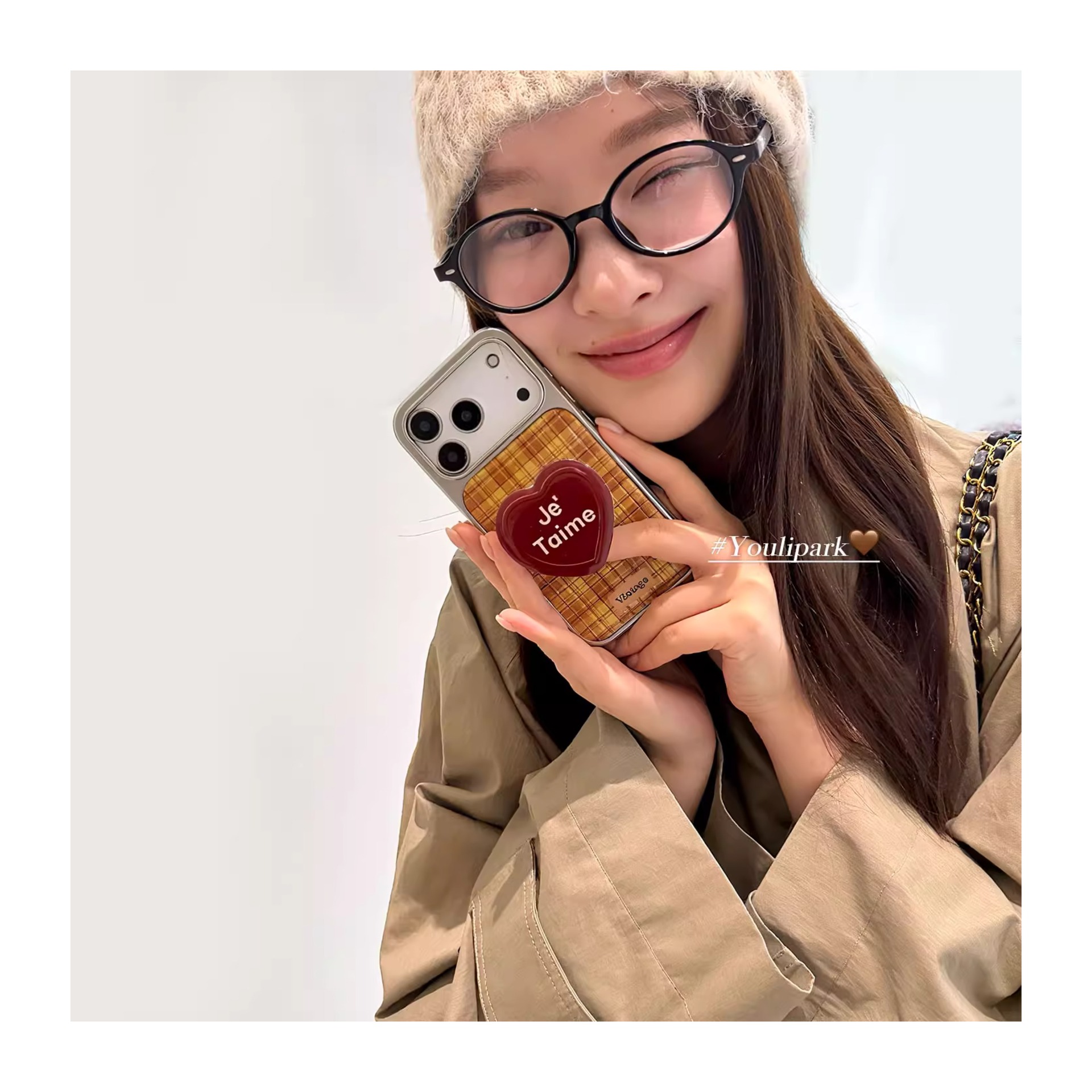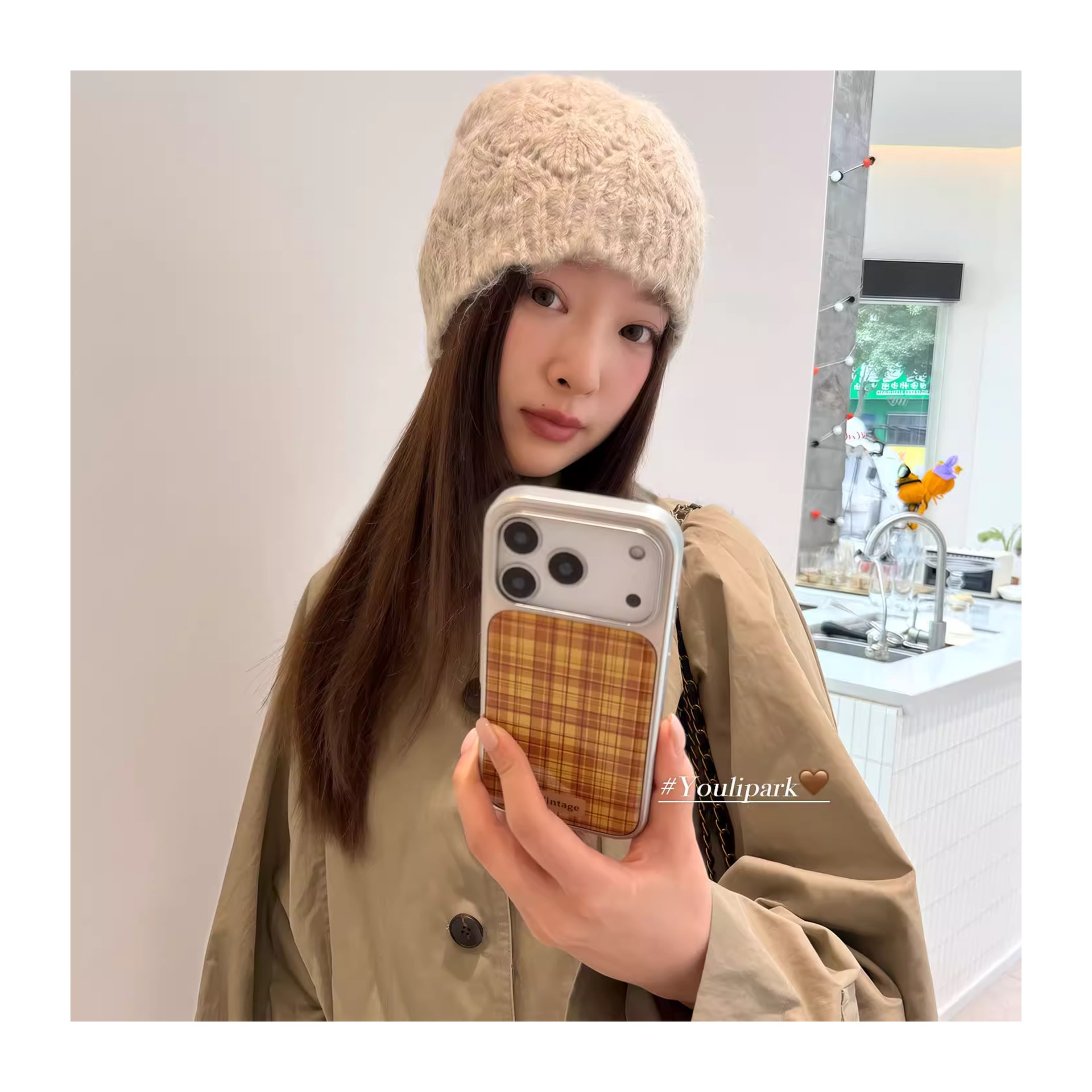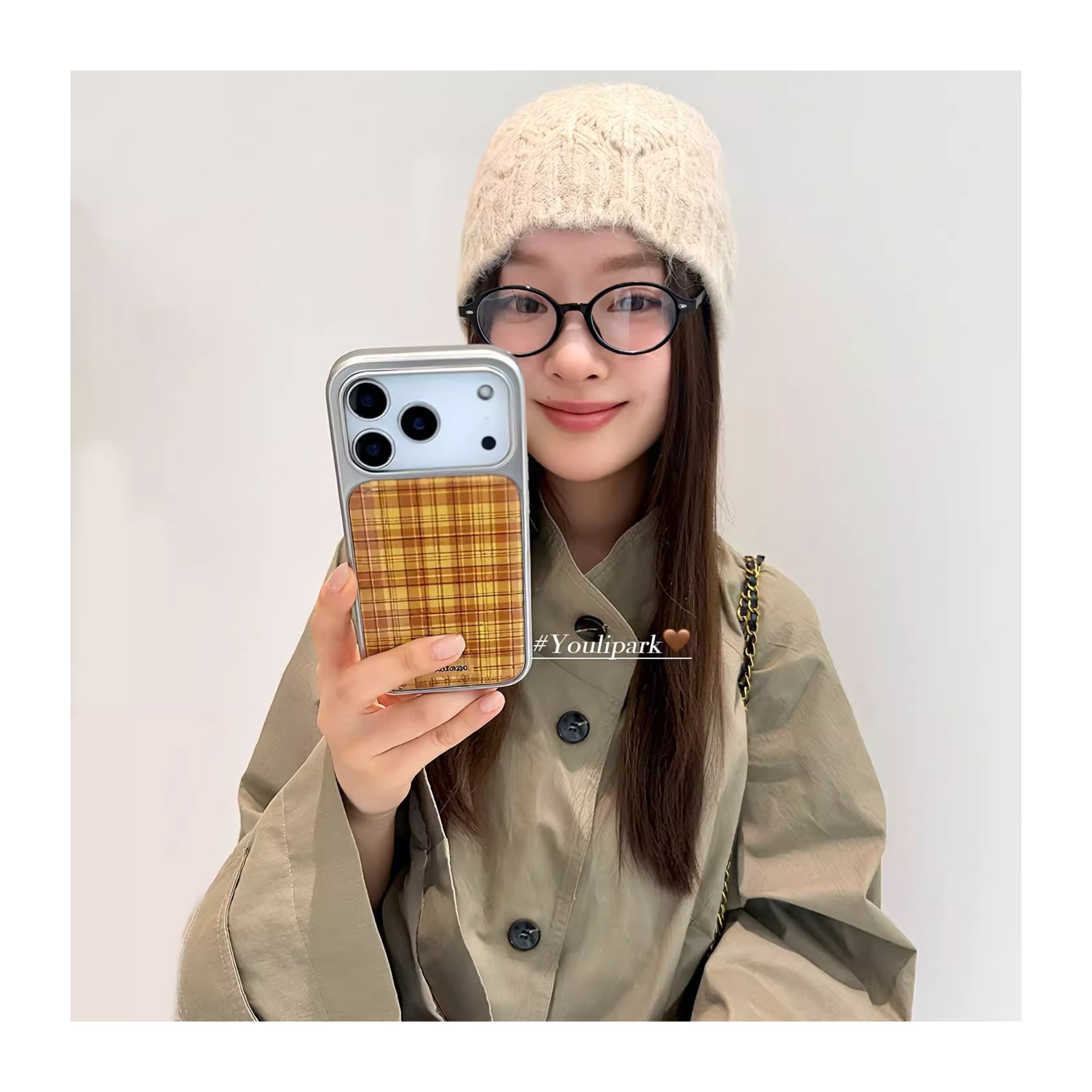由里公园ins韩系秋冬栗子棕格纹爱心支架17适用17pro苹果17ProMax