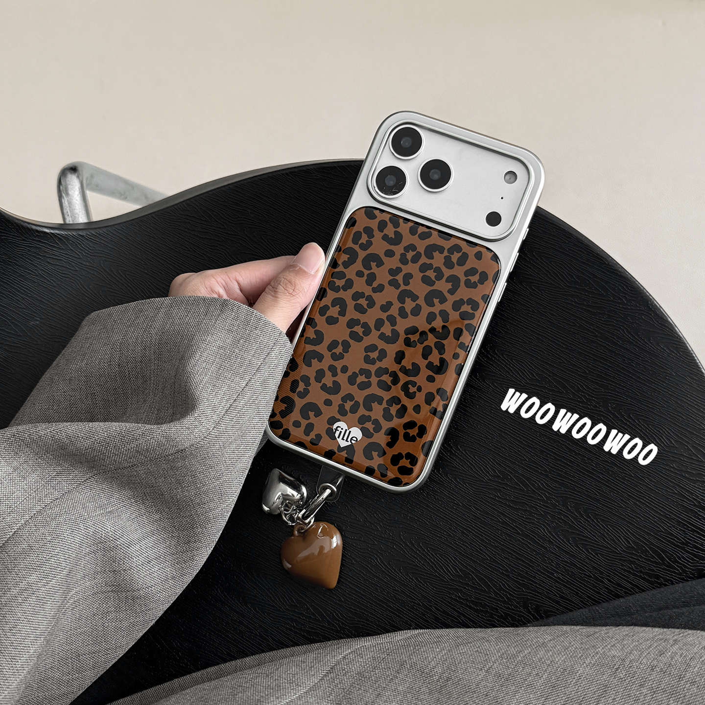 WOOWOOWOO小众ins复古棕色豹纹手机壳爱心挂件适用iphone16promax
