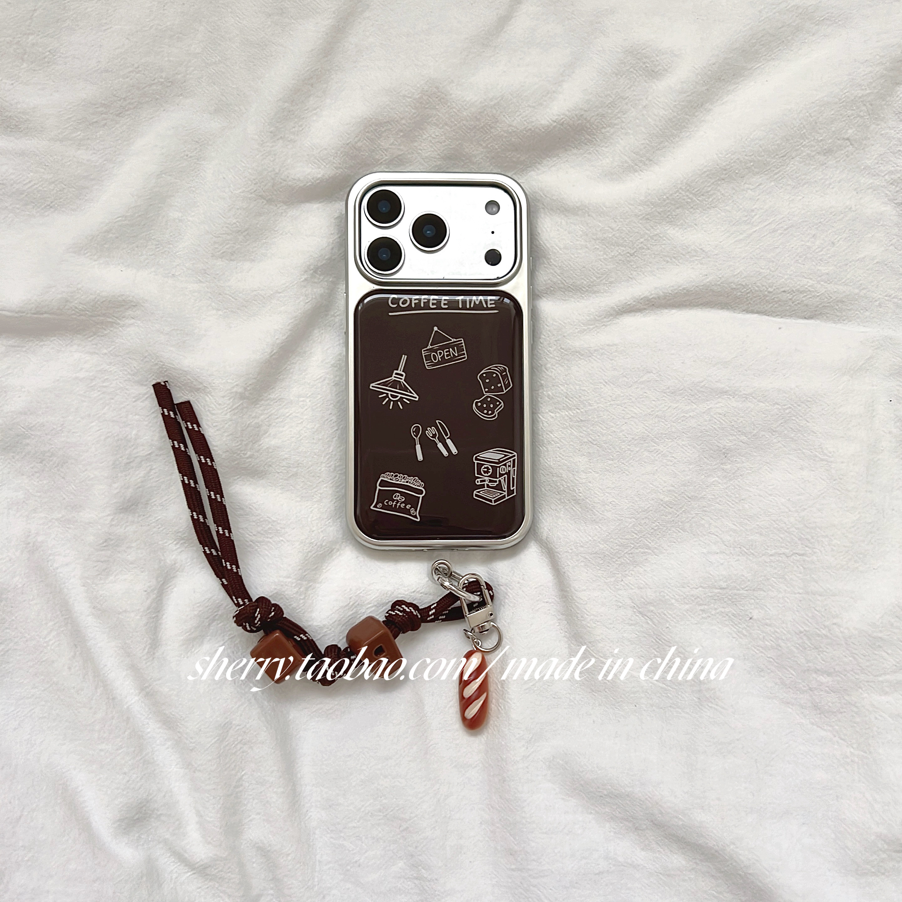 SHERRY*ins风棕色线条咖啡时间适用于苹果17ProMax手机壳iPhone16