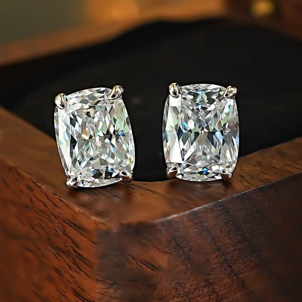 8X10雷迪恩切媲美冰花切长枕形白锆简约单钻白金色托耳钉饰品批发