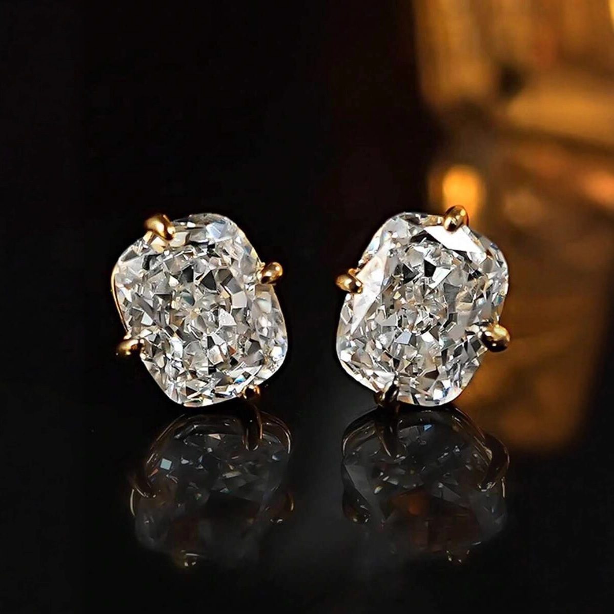 雷迪恩切长枕形耳钉媲美冰花切白锆简约单钻金色托耳钉时尚饰品