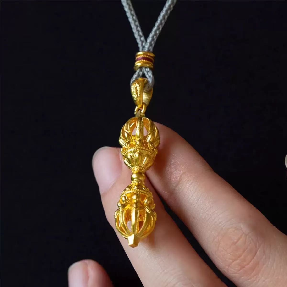錦琪黄金色レトロ金刚杵ペンダントネックレス男軽豪華高級感百合鎖骨鎖首鎖アクセサリー