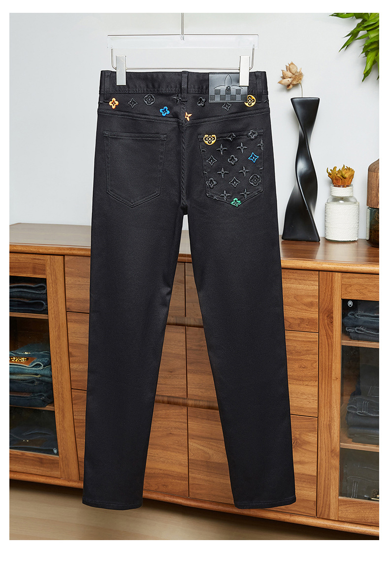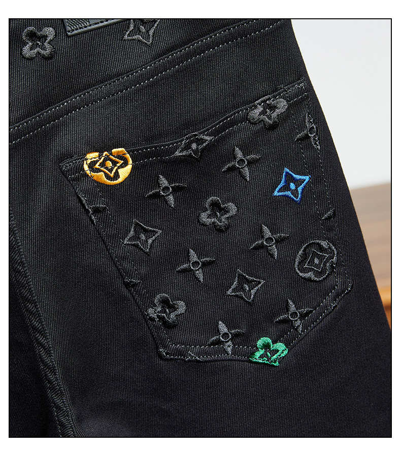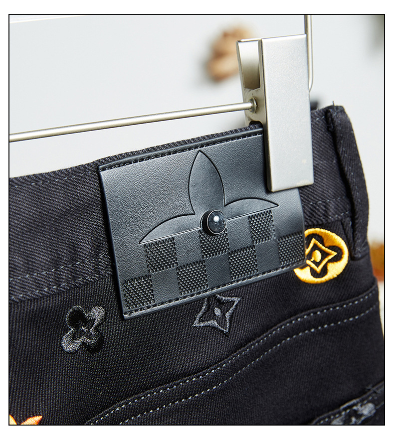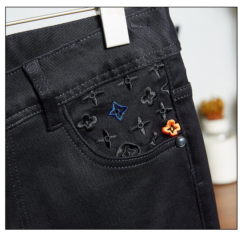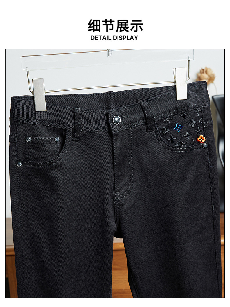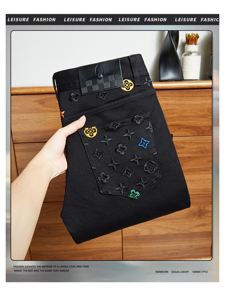 プレミアム春夏トレンドブランド刺繍ジーンズメンズストレッチスリムストレートシンプルハンサムヨーロピアンカジュアルパンツ